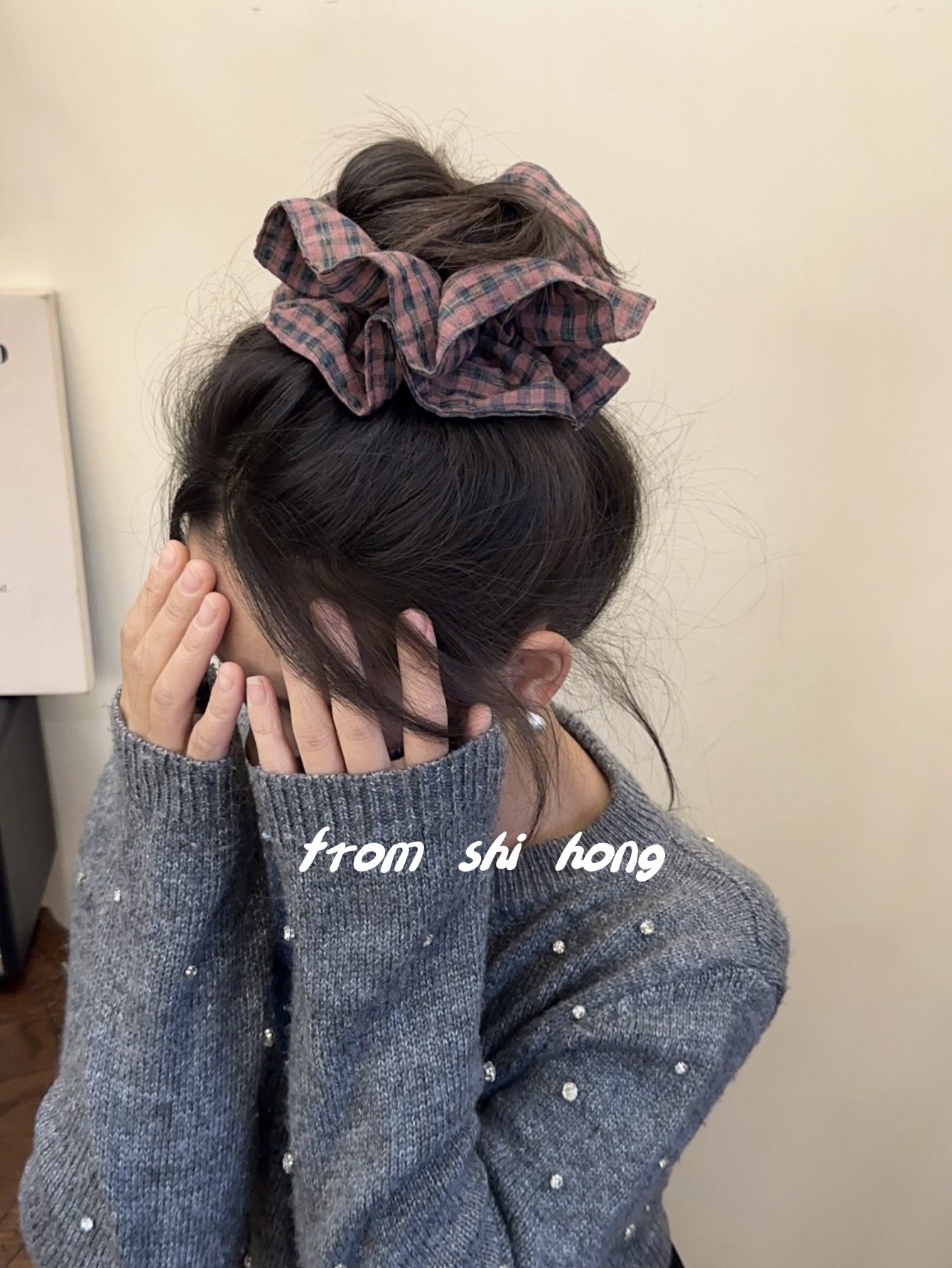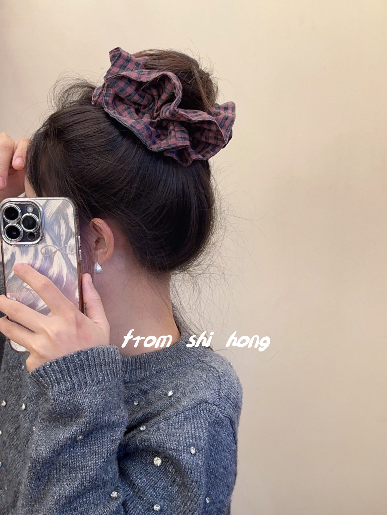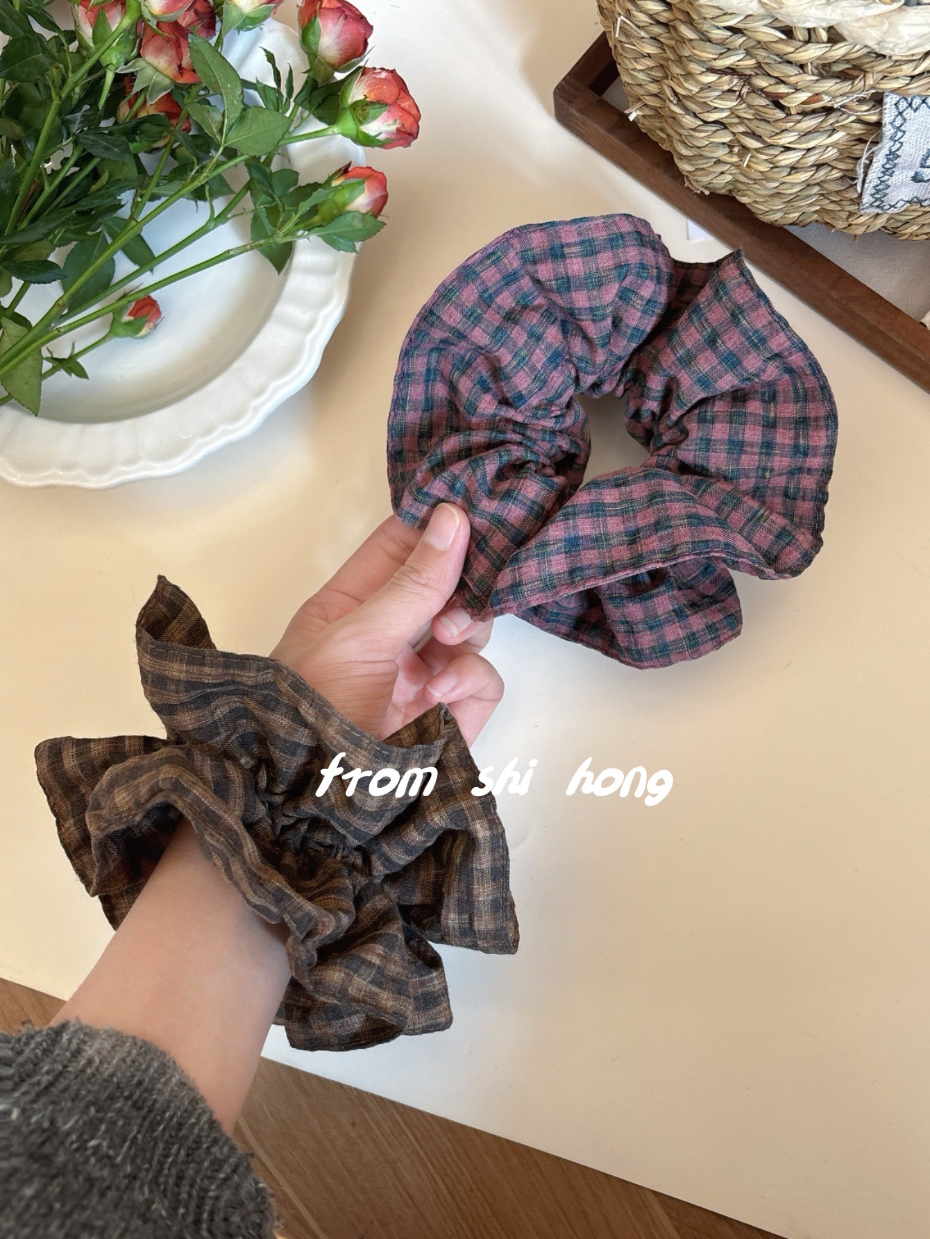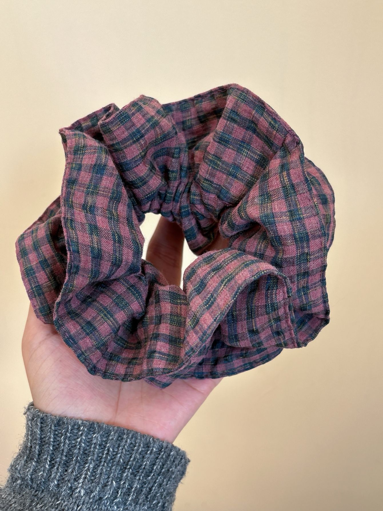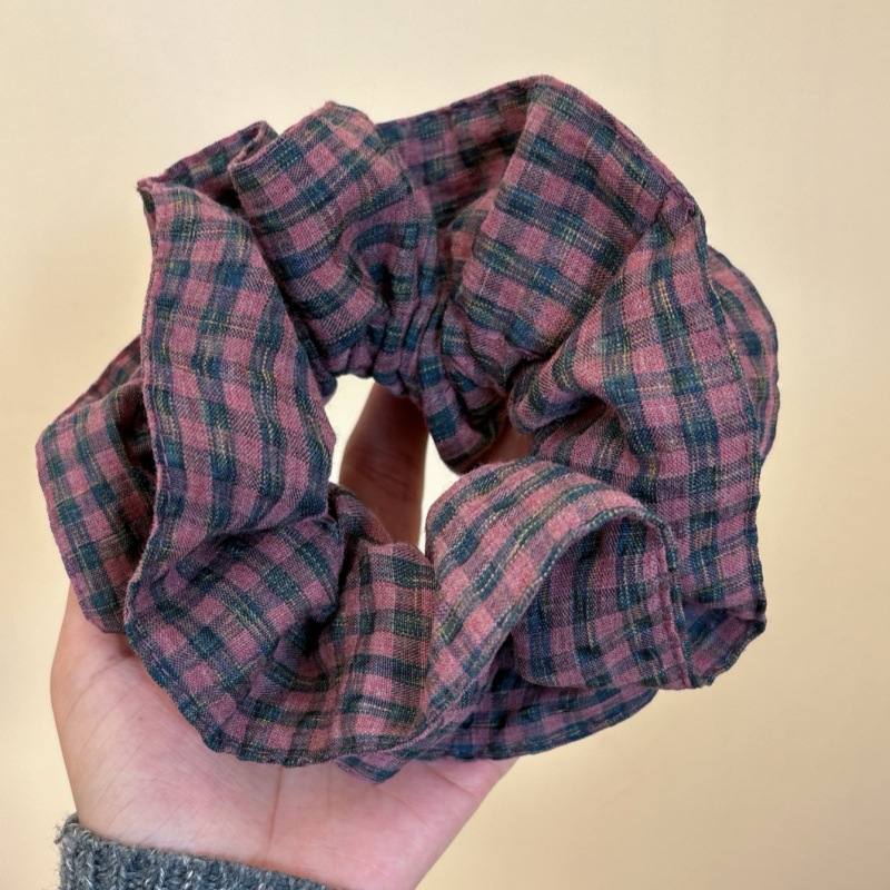 • 퍼플 핑크 체크 무늬 대장 머리끈