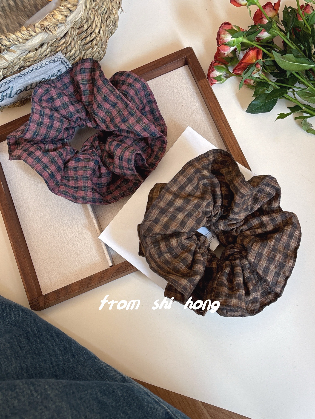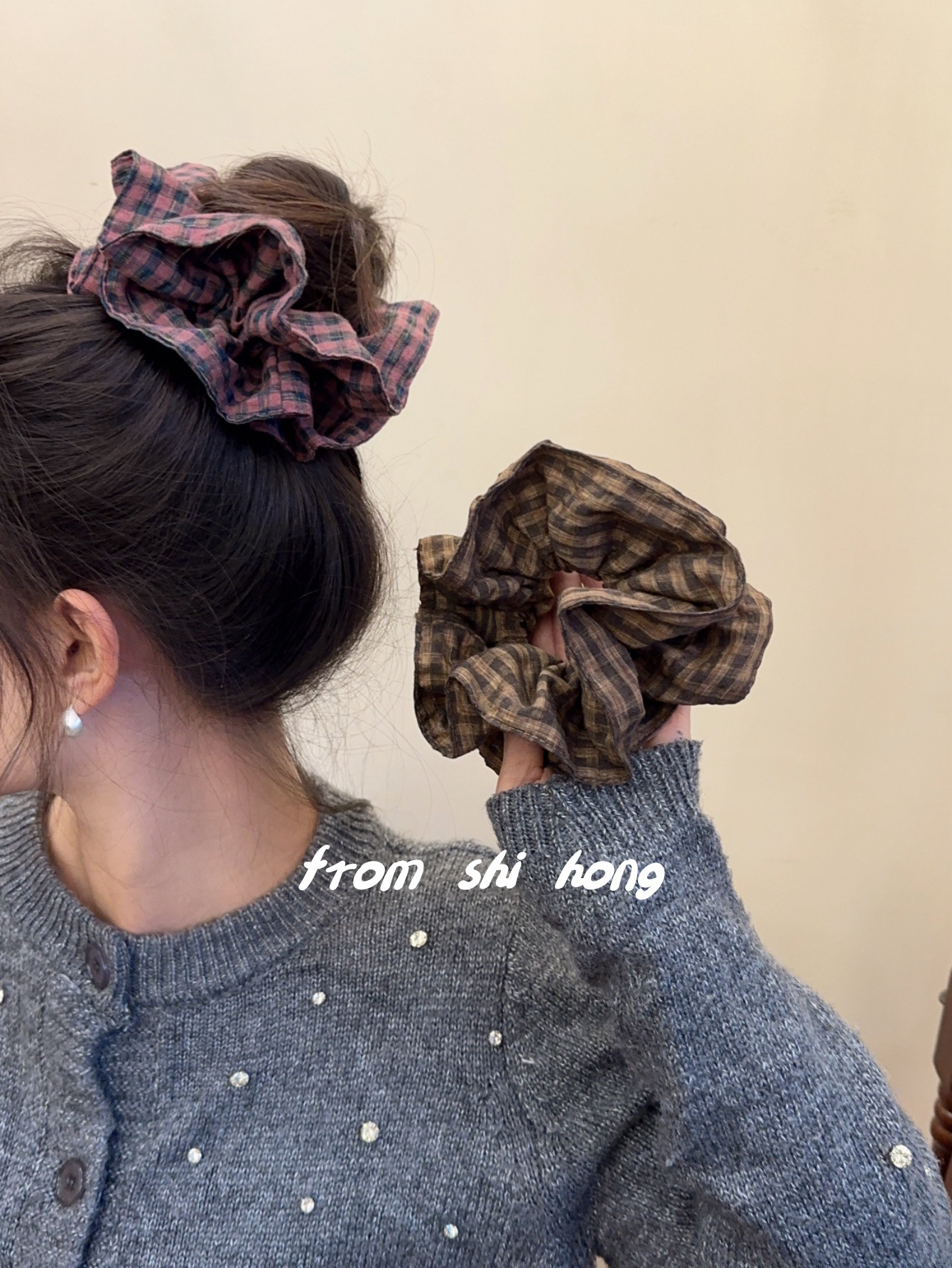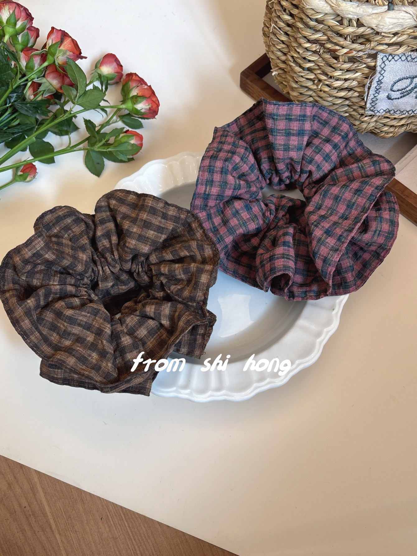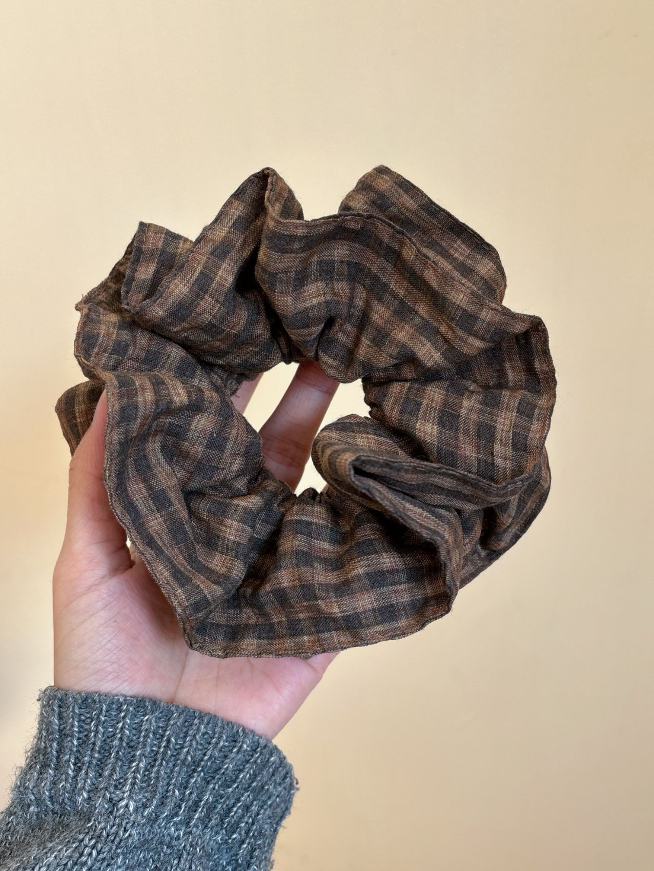 • 브라운 체크무늬 대장머리끈