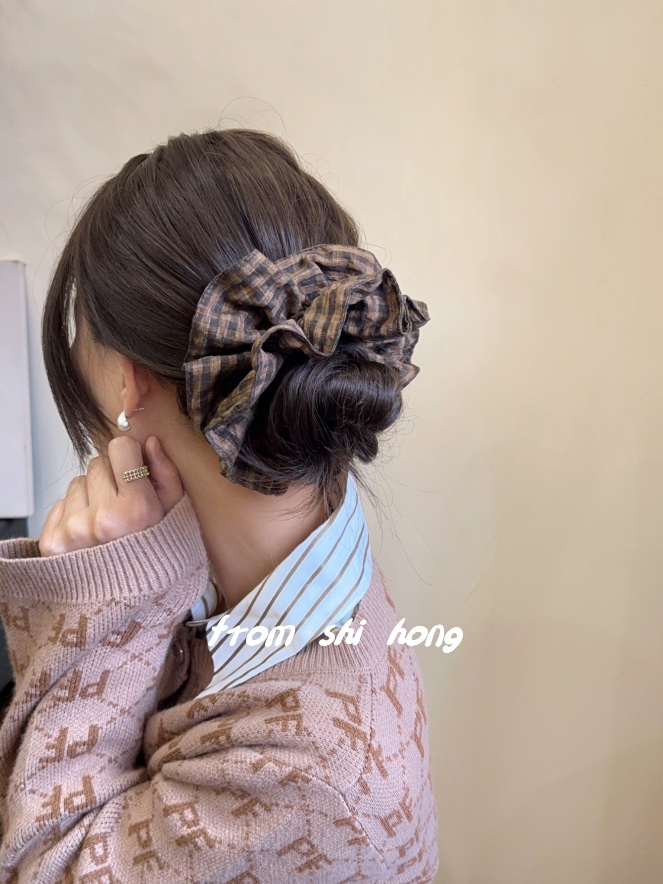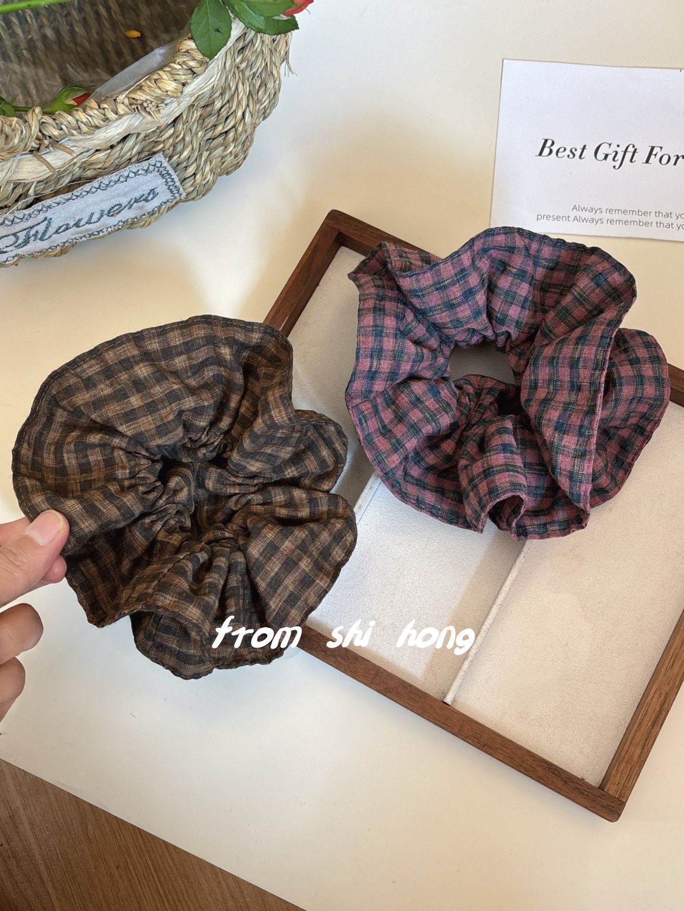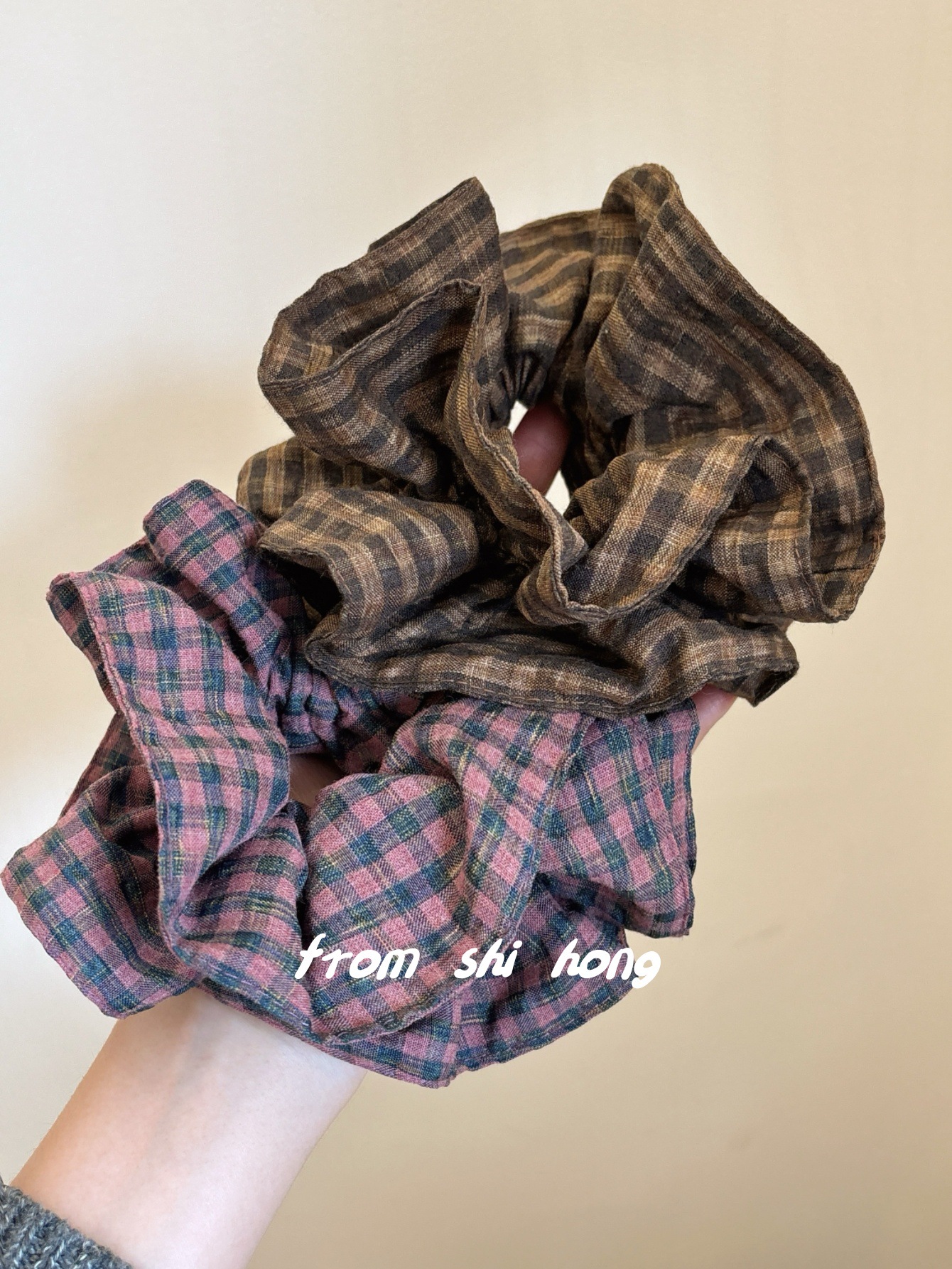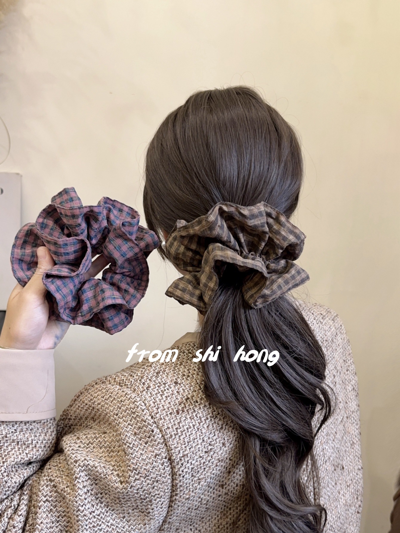 • 브라운 체크무늬 대장머리끈