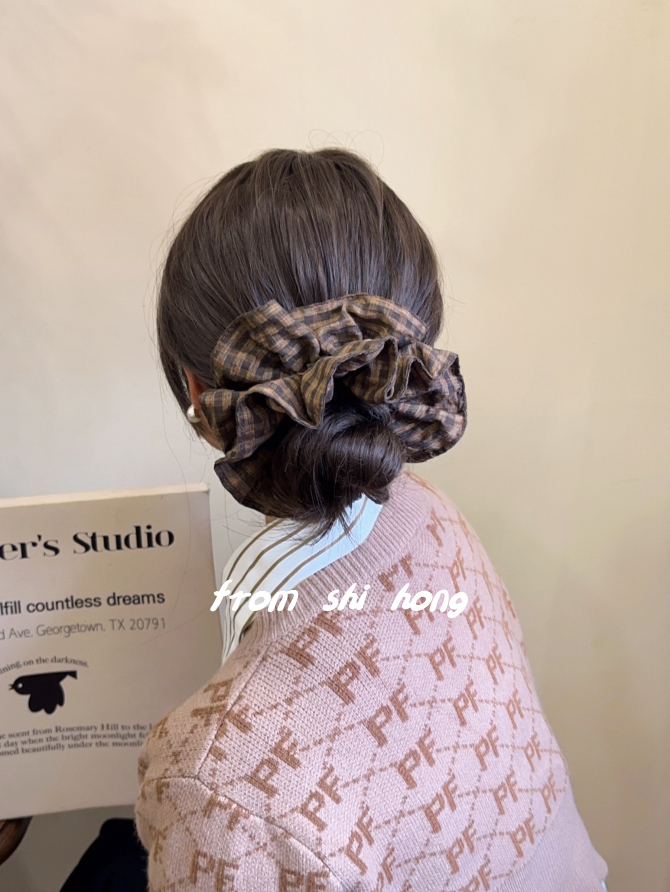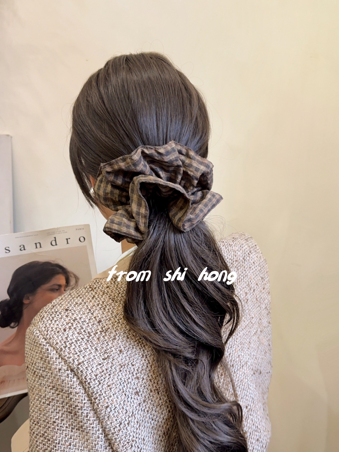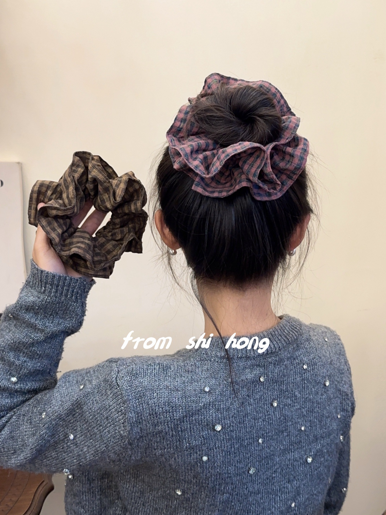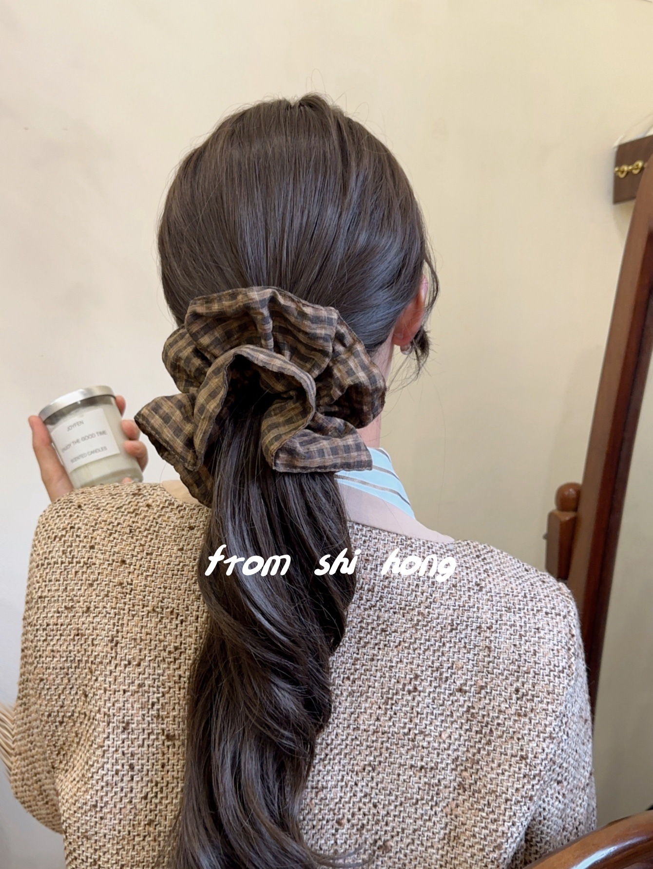 • 브라운 체크무늬 대장머리끈