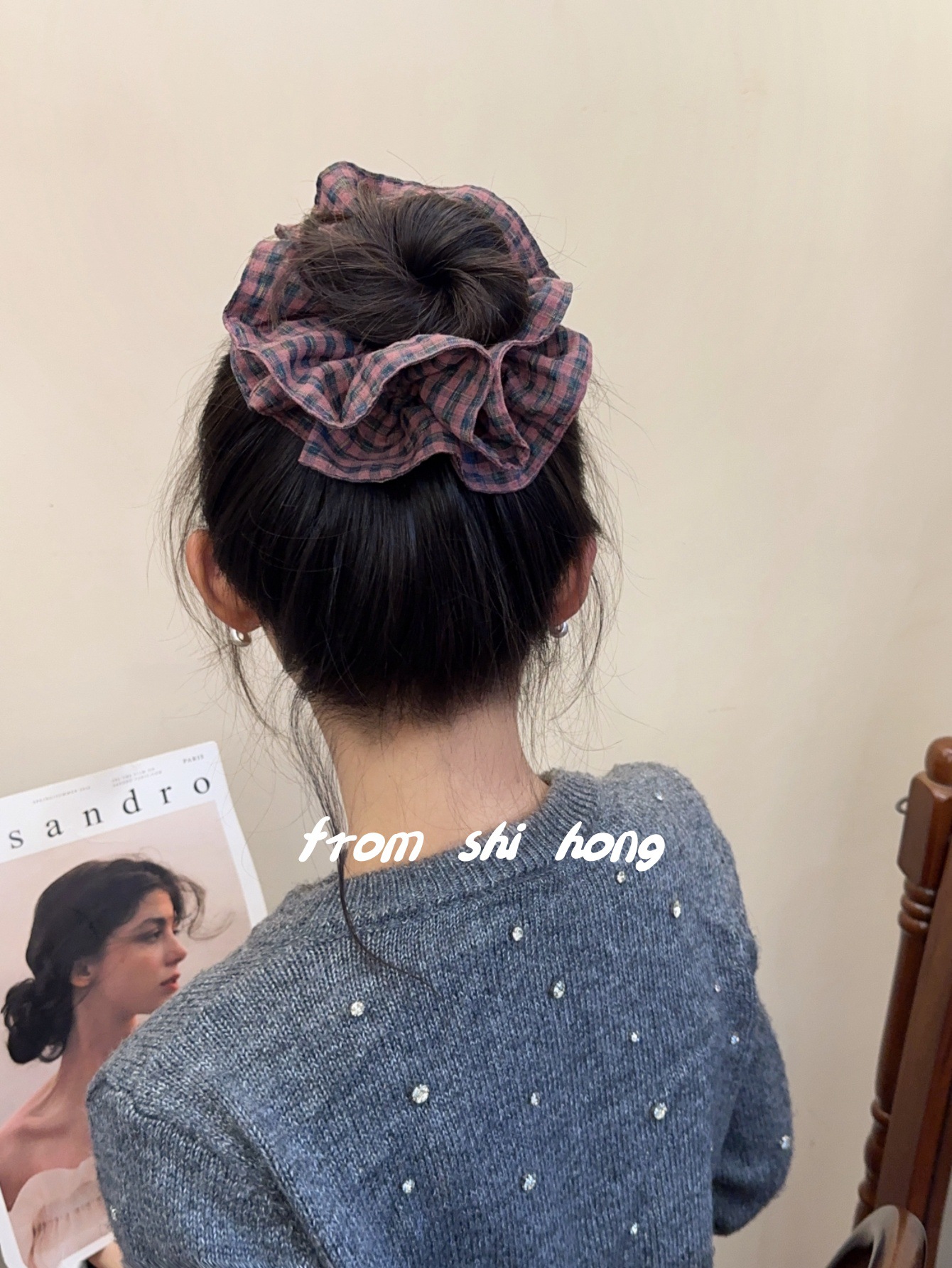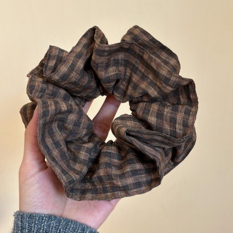 여성을위한 하이 엔드 레트로 더블 레이어 체크 대형 마루 베니 헤어 서클 가을 및 겨울 다크 브라운 마일라드 스타일 틈새 헤어 액세서리
