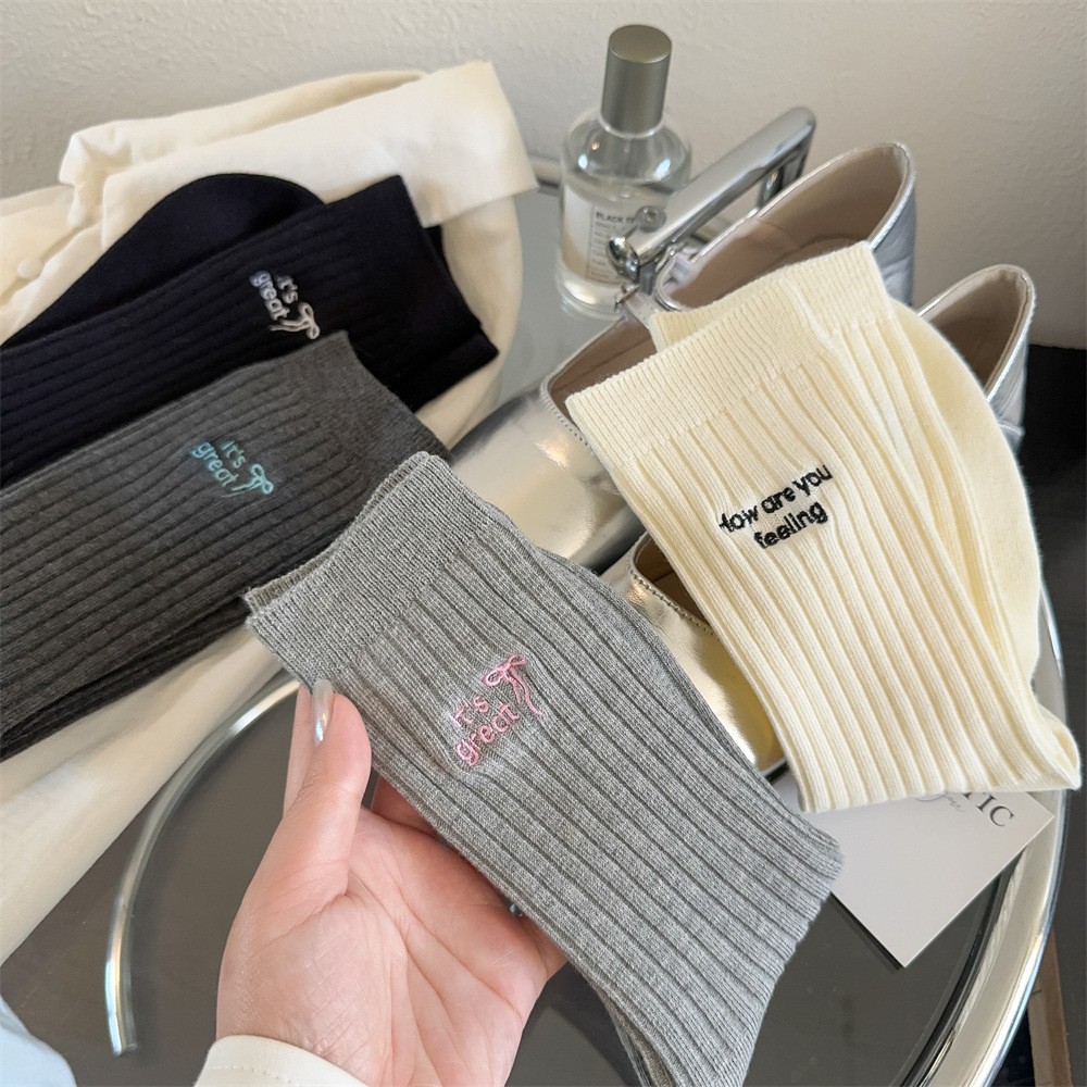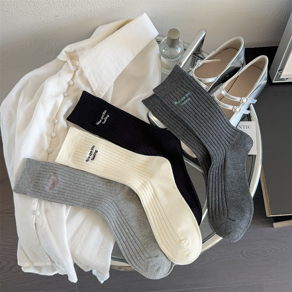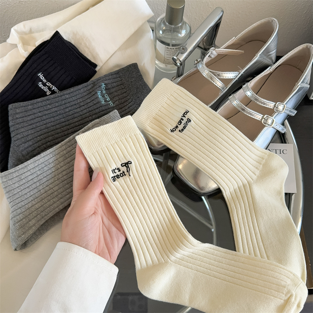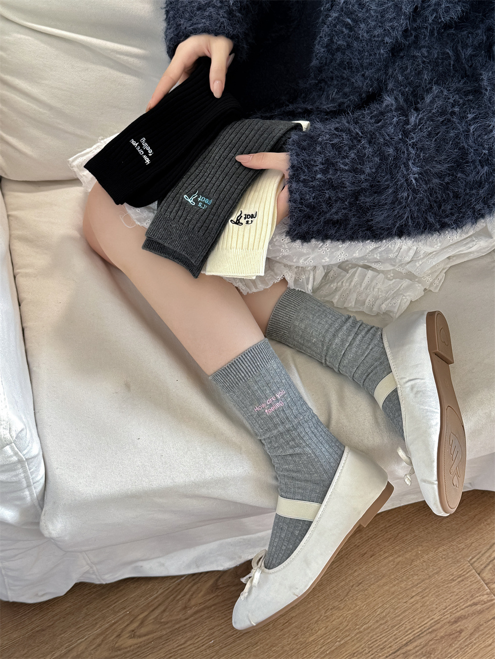 가을과 겨울 새로운 도착 뼈없는 양말 여자 더블 바늘 AB 자수 중간 길이 양말 Ins 한국식 소녀 쌓인 양말 슬리밍 스타킹
