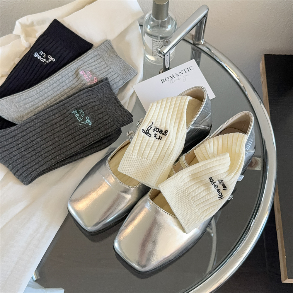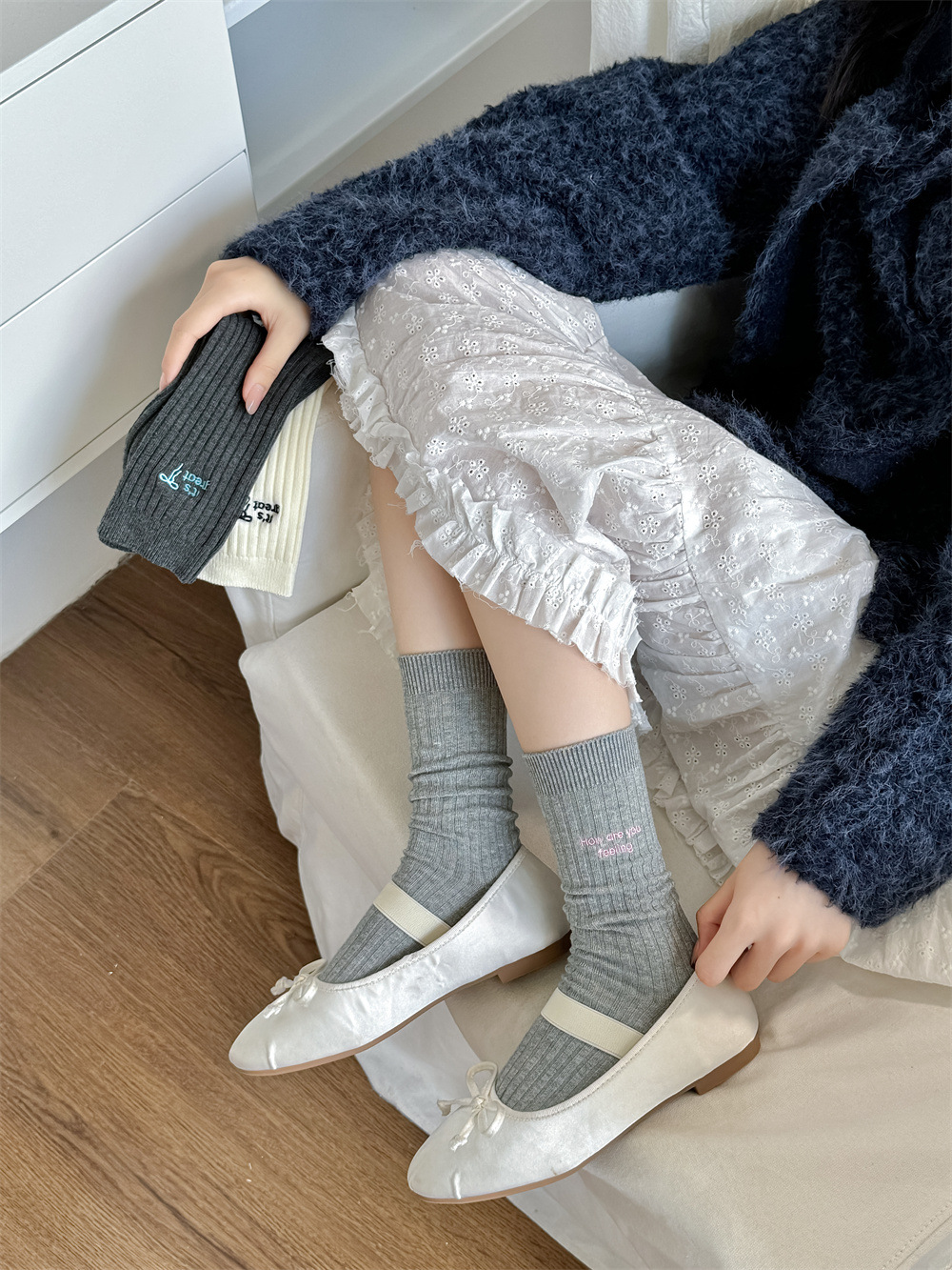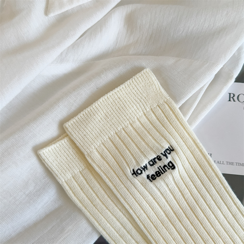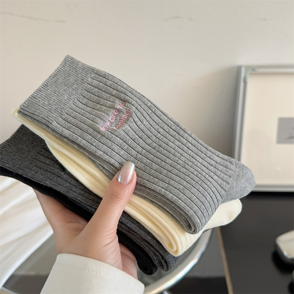 가을과 겨울 새로운 도착 뼈없는 양말 여자 더블 바늘 AB 자수 중간 길이 양말 Ins 한국식 소녀 쌓인 양말 슬리밍 스타킹