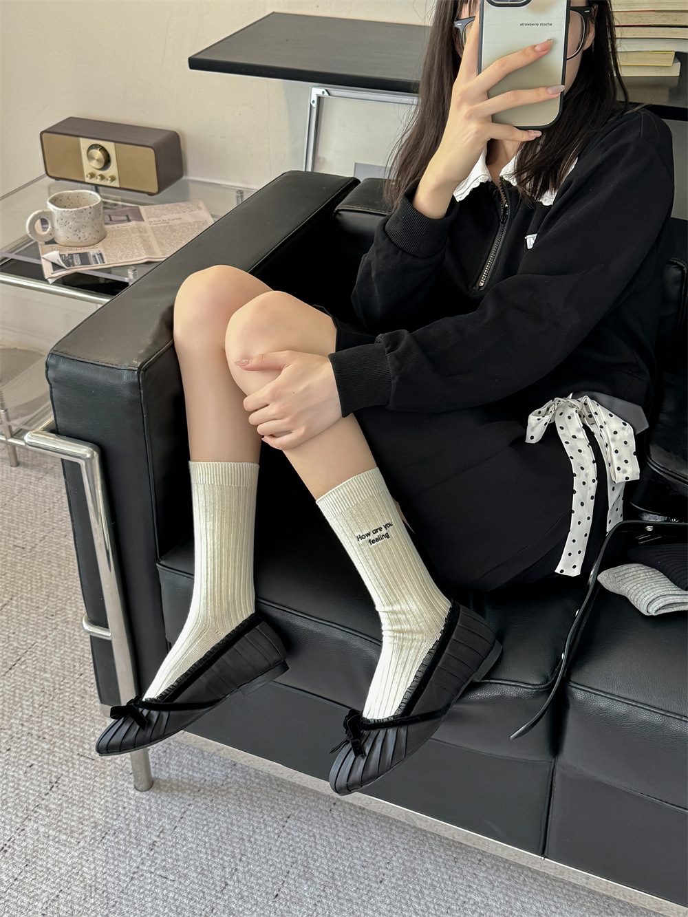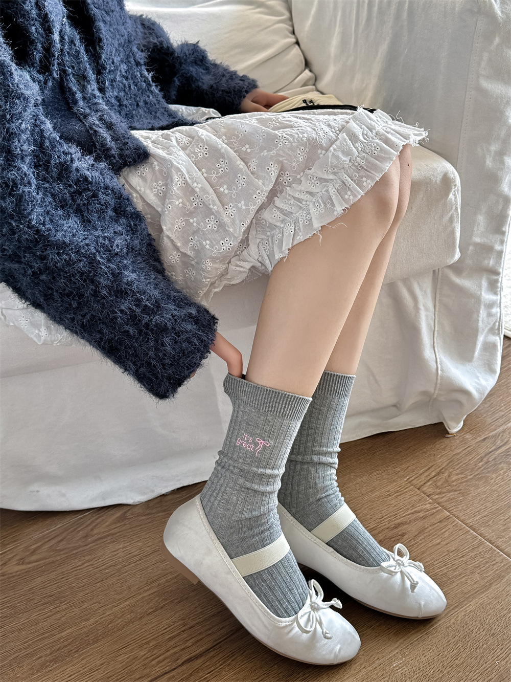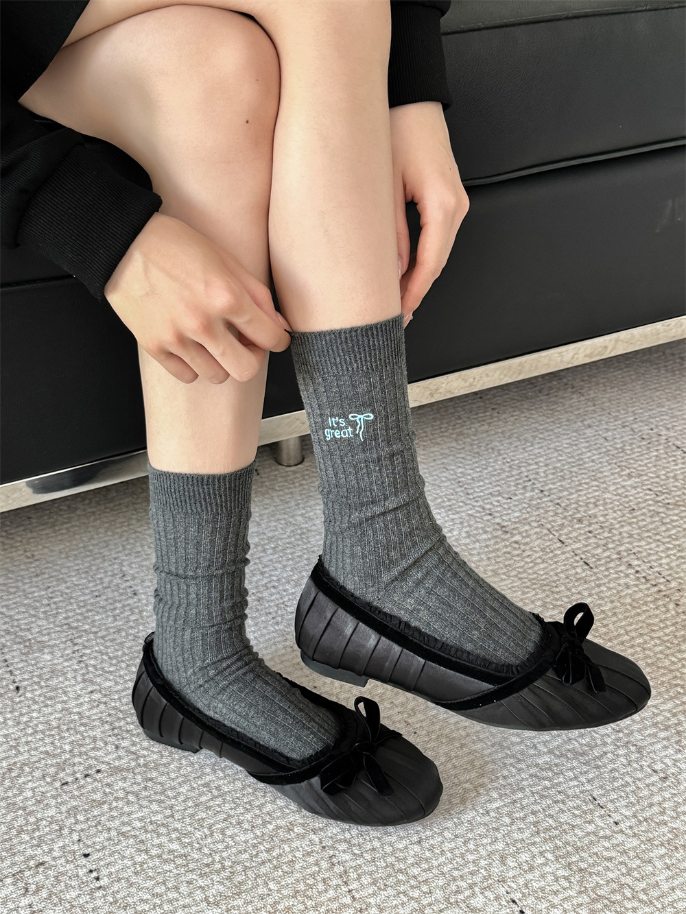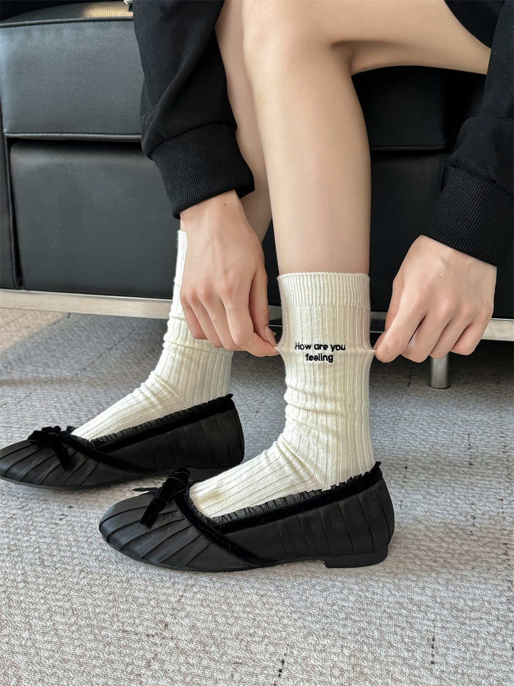 가을과 겨울 새로운 도착 뼈없는 양말 여자 더블 바늘 AB 자수 중간 길이 양말 Ins 한국식 소녀 쌓인 양말 슬리밍 스타킹