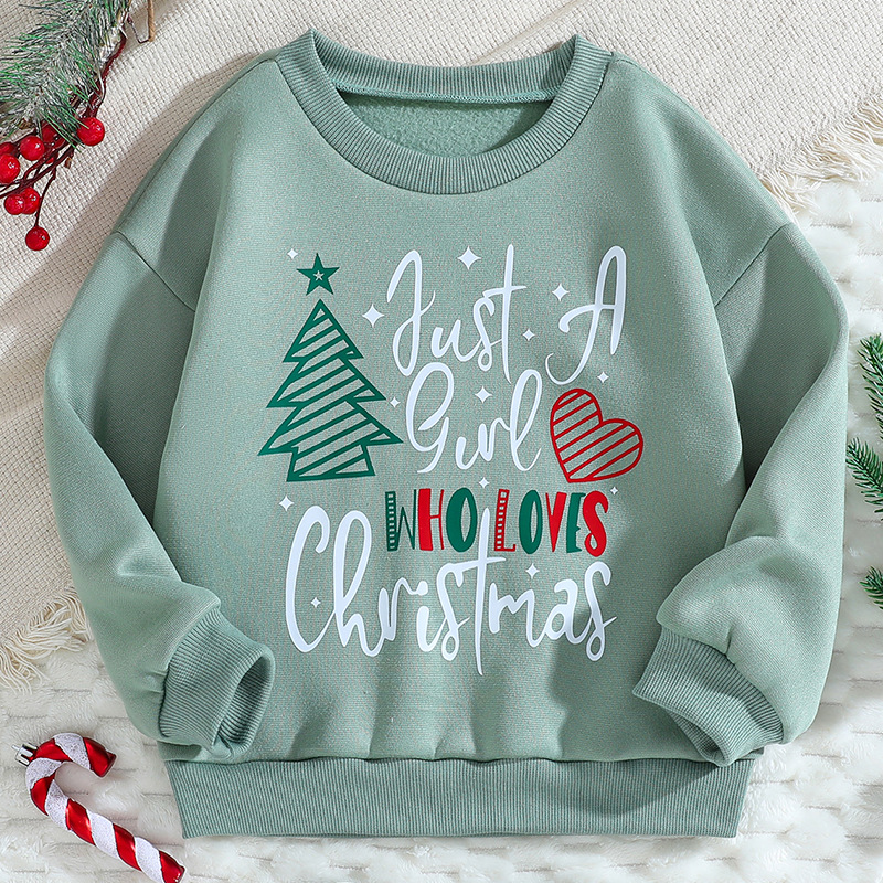 대외 무역 가을 어린이 둥근 목 땀 크리스마스 인쇄 귀여운 캐주얼 양털 긴 소매 풀오버 소녀 탑스토어 가기