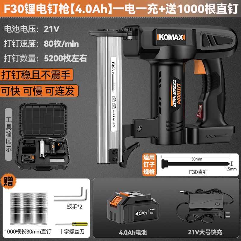 • F30 리튬 배터리 네일건 [4.0Ah] 배터리 1개, 충전 1개 + 무료 직선 못 1000개