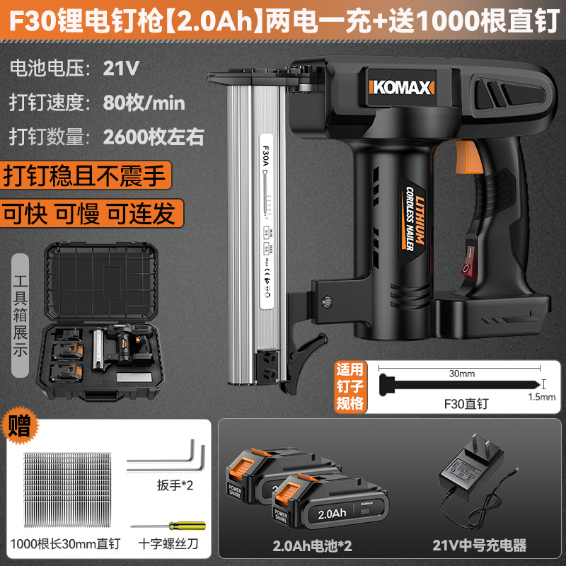 • F30 리튬 배터리 네일건 [2.0Ah] 배터리 1개, 충전 1개 + 무료 직선 못 1000개