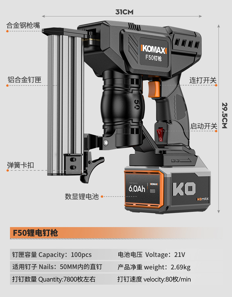 • ↓↓↓↓다음은 50mm 길이의 못을 박을 수 있고 매우 강력한 F50 모델입니다!↓↓↓↓