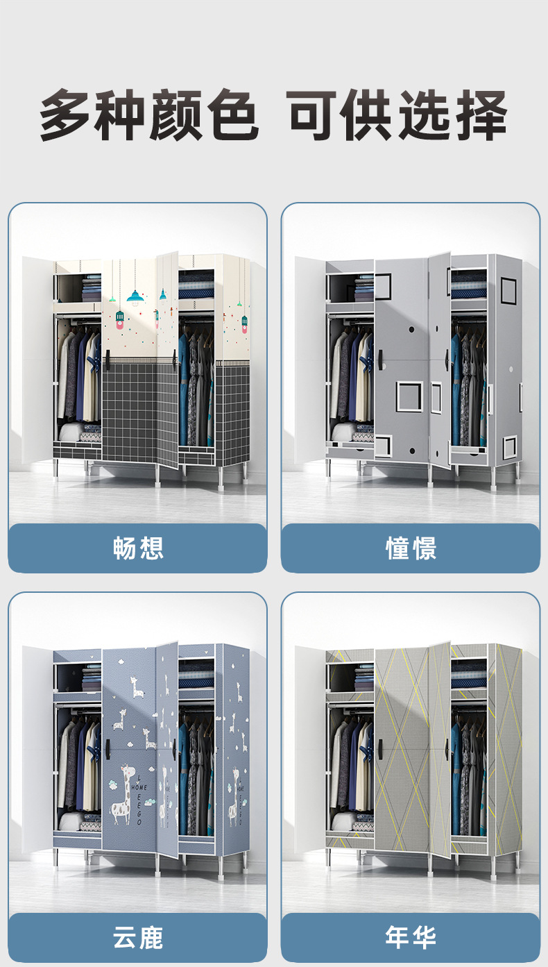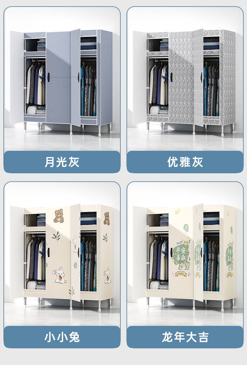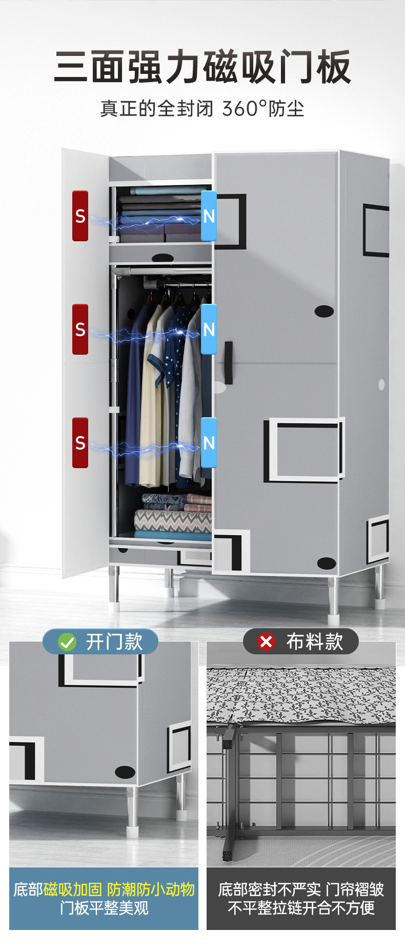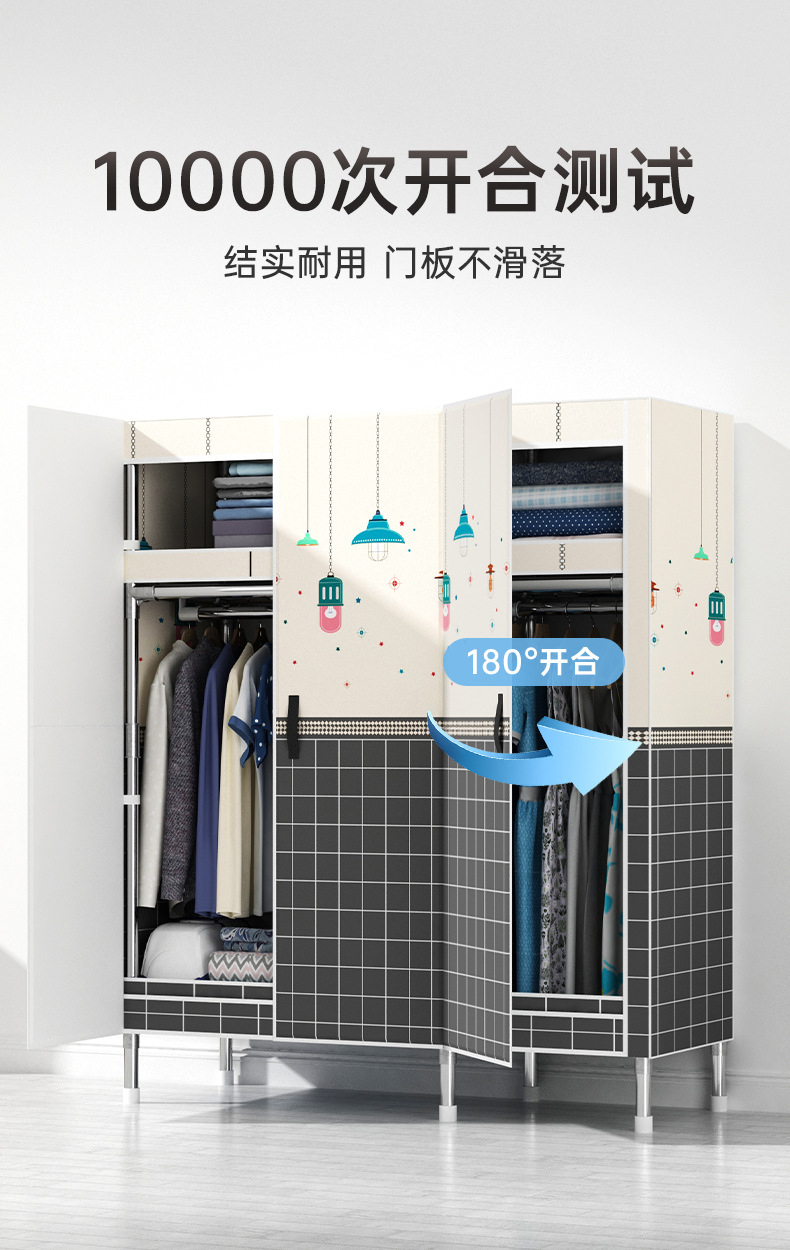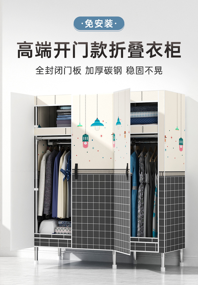 열린 문 간단한 옷장 자석 문 옷장 옷장 침실 가구 전체 강철 프레임 강화 두꺼운 간단한 조립 옷장
