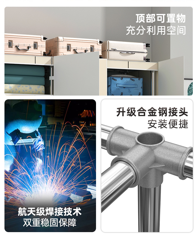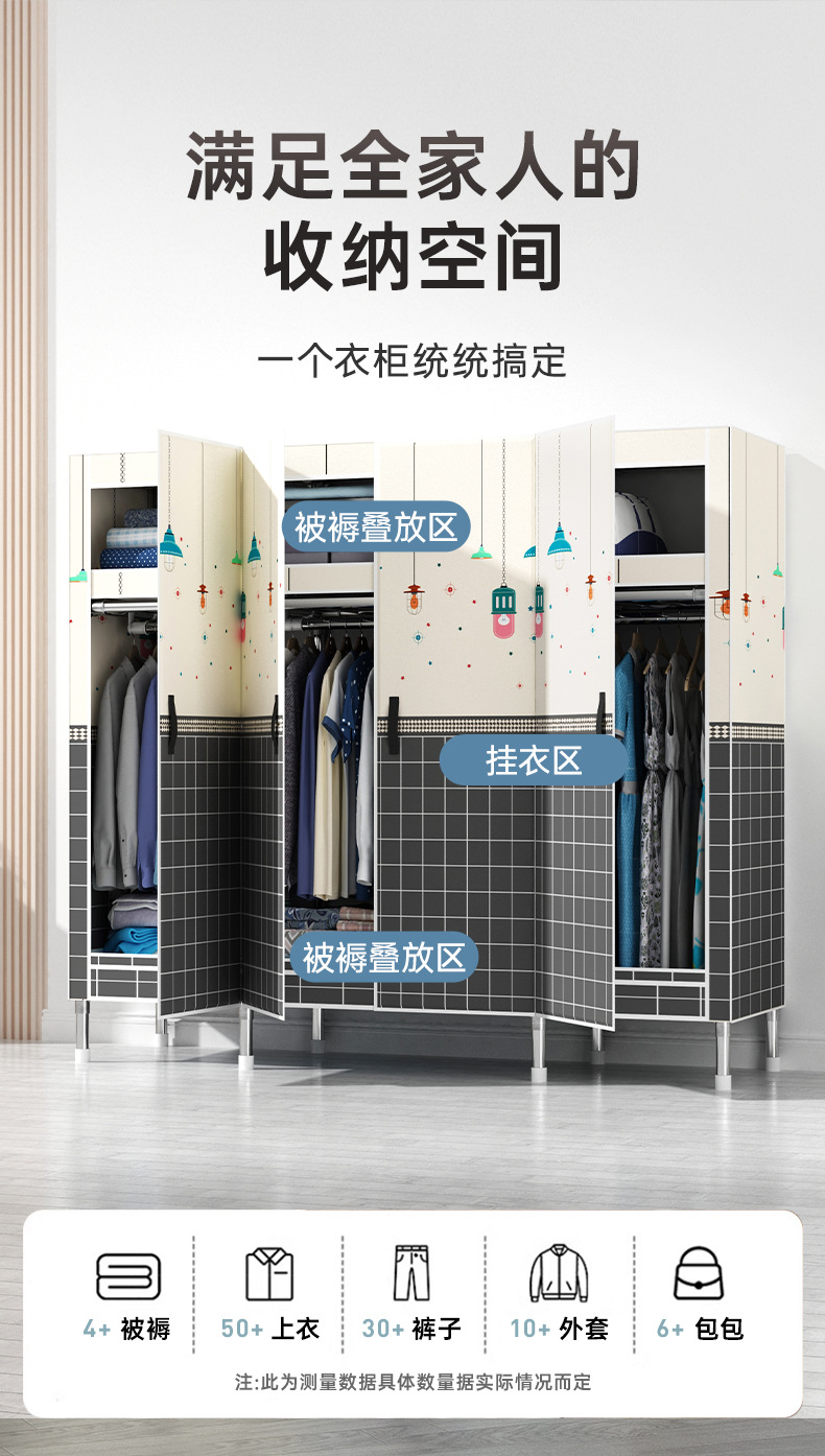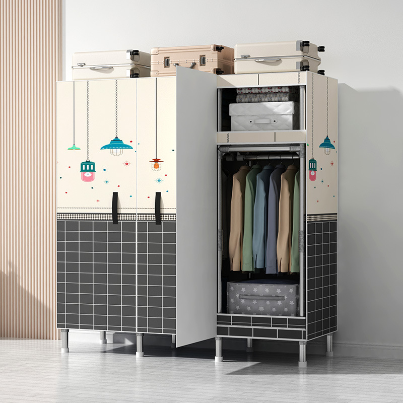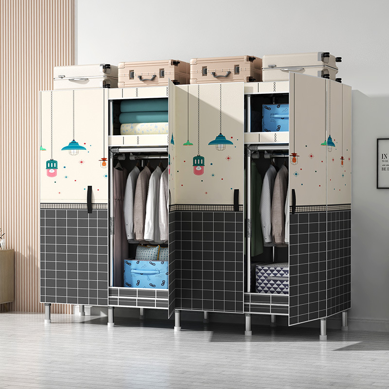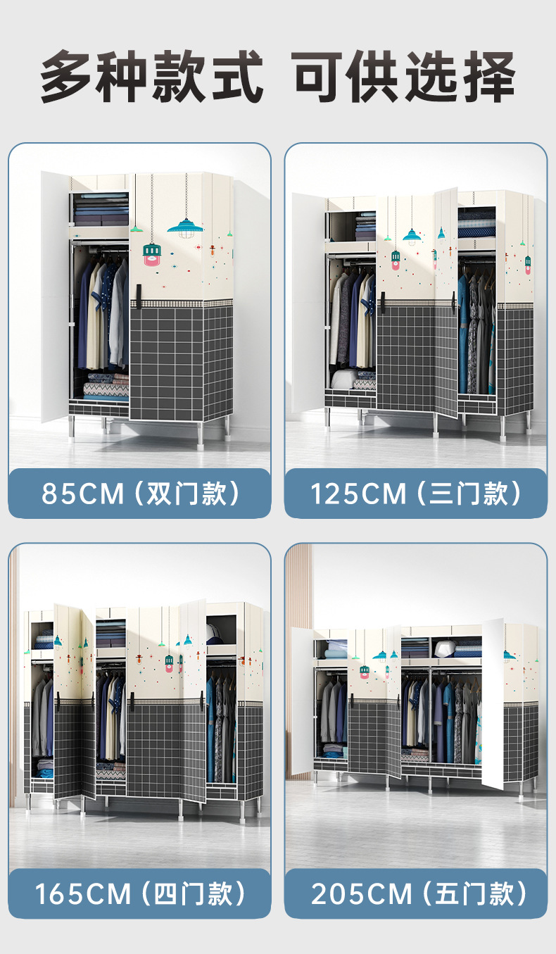 열린 문 간단한 옷장 자석 문 옷장 옷장 침실 가구 전체 강철 프레임 강화 두꺼운 간단한 조립 옷장