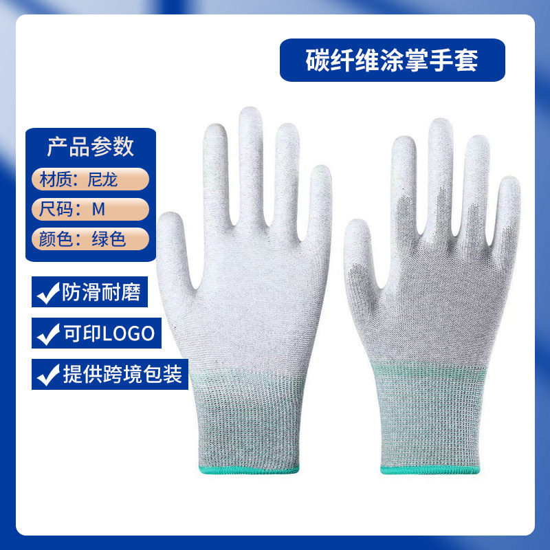 루공 탄소 섬유 정전기 방지 PU 손바닥 코팅 장갑 내마모성 미끄럼 방지 전자 공장 현장 노동 보호 장갑