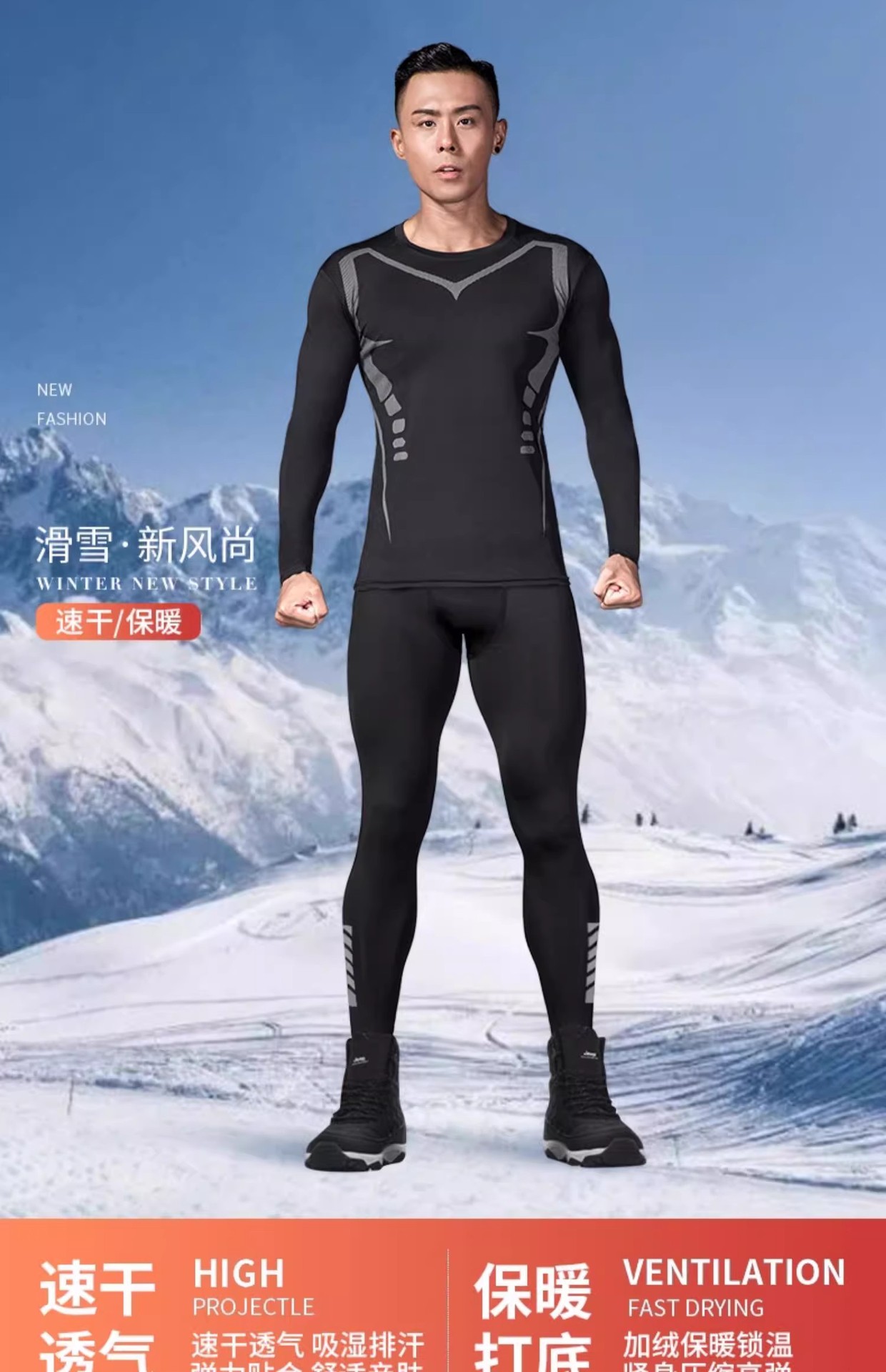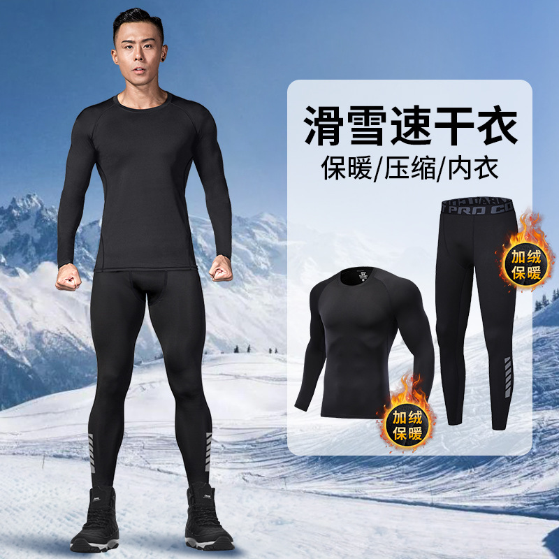 빠른 건조 의류 남성 스키 열 속옷 타이트한 스포츠 달리기 세트 기본 압축 야외 기모 겨울 피트니스스토어 가기