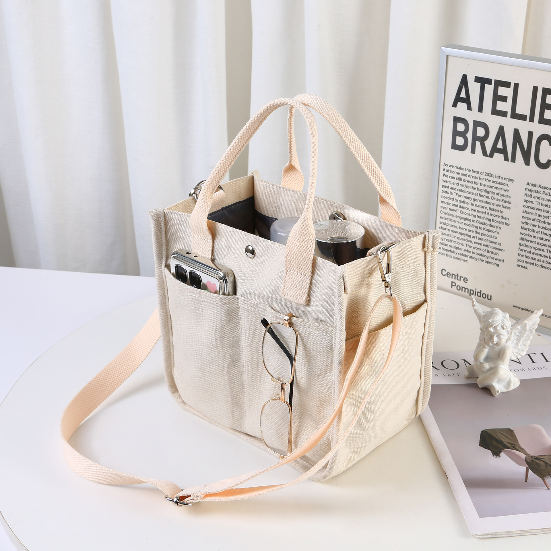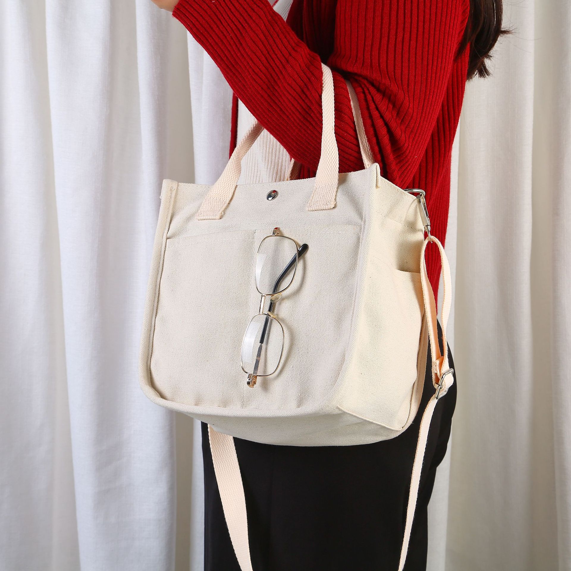 국경 간 폭발성 3 차원 멀티 포켓 토트 캔버스 가방 손 크로스 바디 가방 간단한 올 매치 휴대용 도시락 가방
