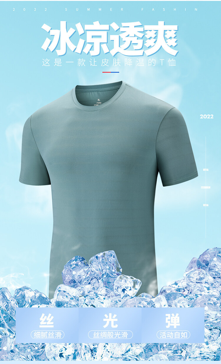 2023 국경 아이스 실크 반팔 여름 얇은 통기성 스포츠 커플 티셔츠 탄성 빠른 건조 남성과 여성의 프레스 라벨