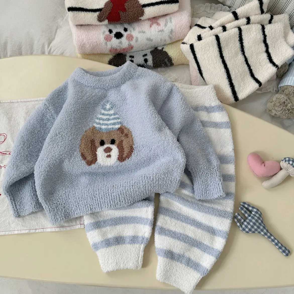 2025 가을, 겨울 잠옷 가을, 겨울 두꺼운 어린이 가정 의류 세트 소녀 산호 벨벳 소년 겉옷 겨울 투피스 세트