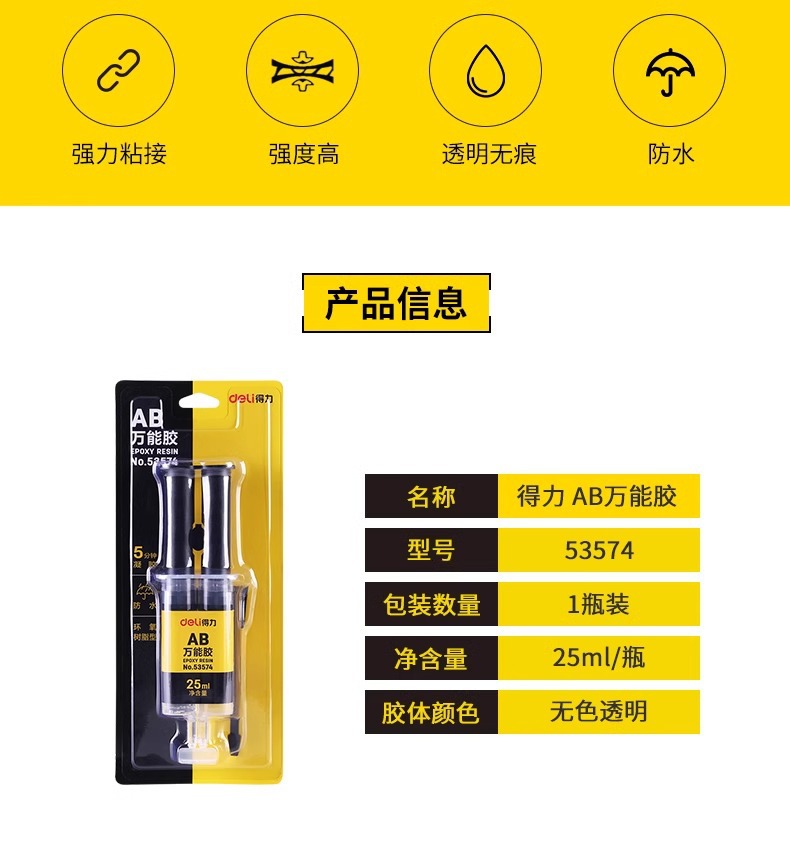 델리 AB 접착제 강한 보편적 인 접착제 투명 접착제 에폭시 수지 접착제 빠른 건조 방수 금속 세라믹 나무