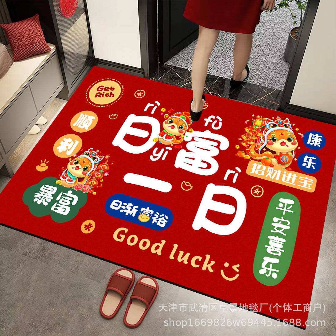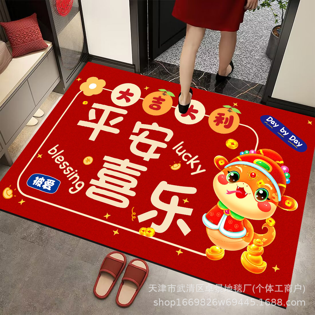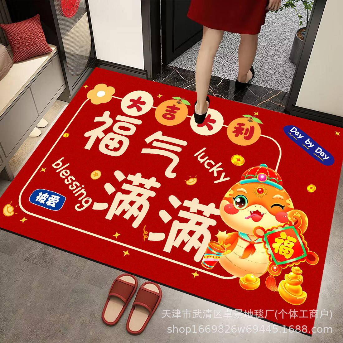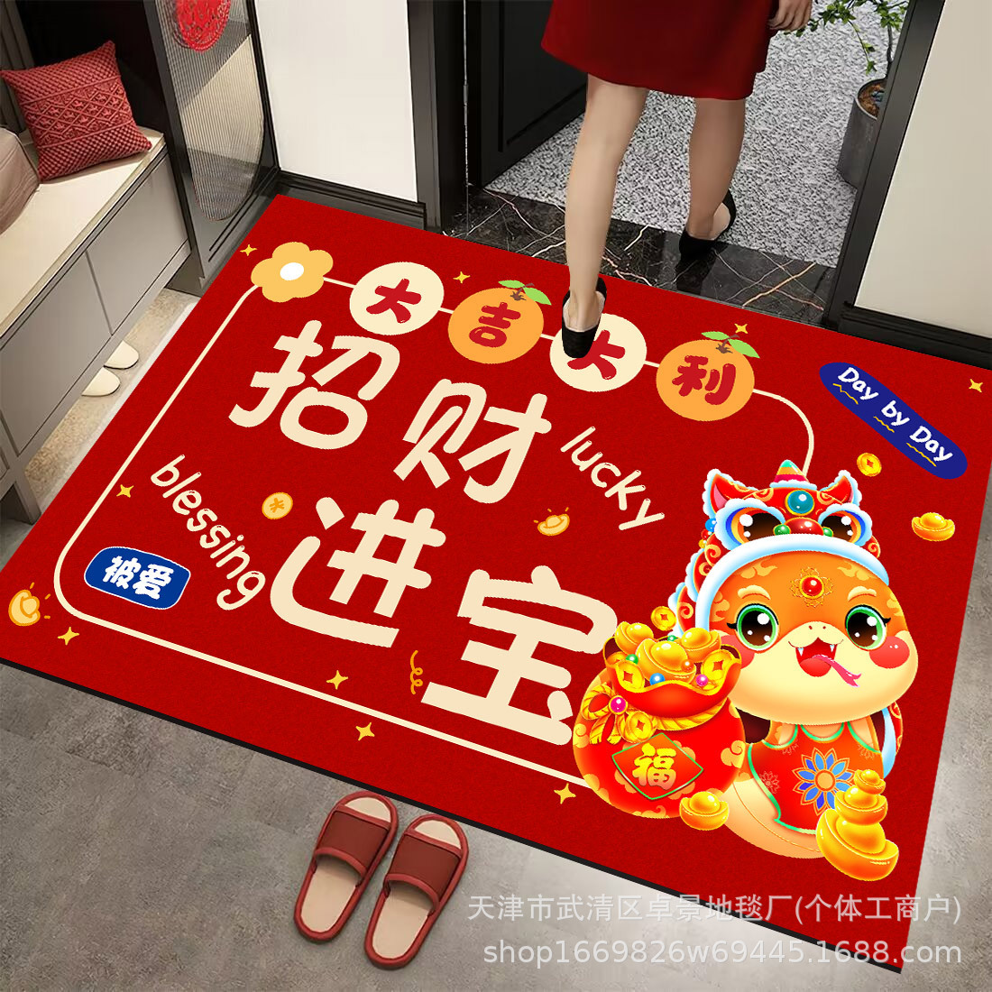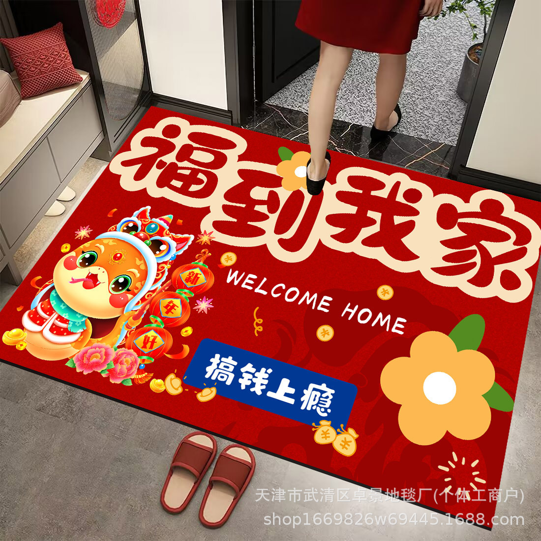 뱀의 해 붉은 문 매트 2025 봄 축제 축제 입구 장식 발 매트 크리스탈 벨벳 선물 카펫은 로고를 추가 할 수 있습니다 도매스토어 가기