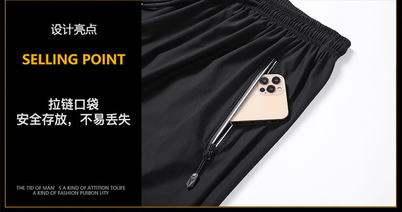 남자 여름 청소년 얇은 아이스 실크 통기성 느슨한 스포츠 반바지 남자 아이스 실크 캐주얼 바지 빠른 건조 바지스토어 가기