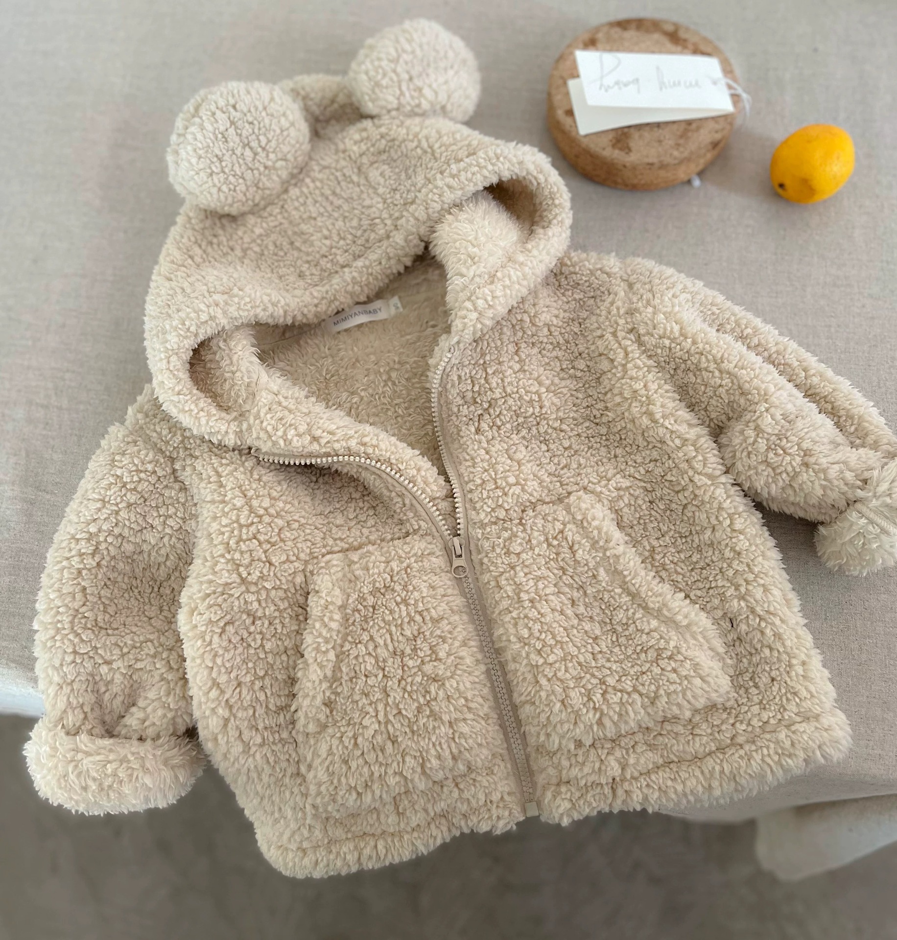 아기 코트, 가을 겨울 신제품, 소년 소녀용 귀가 있는 모피 스웨터 코트, 아기 단색 지퍼 셔츠스토어 가기