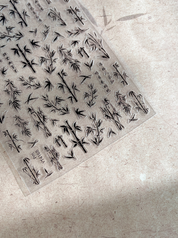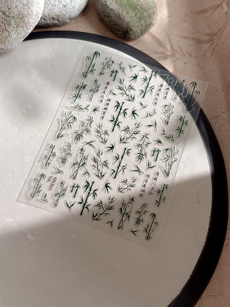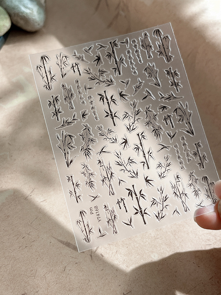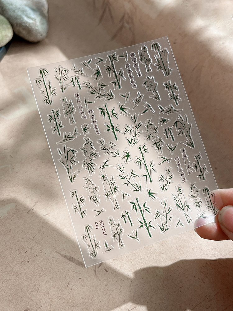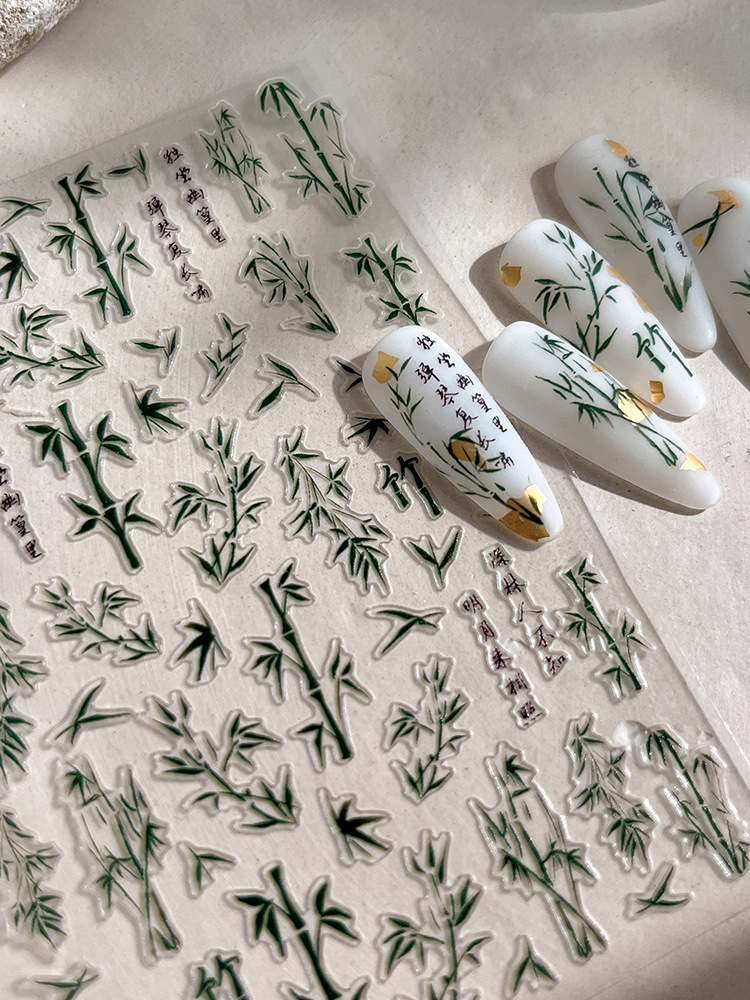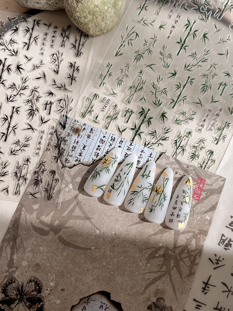 YITU 개미 그림 골동품 대나무 네일 아트 스티커 그린 블랙 리치 대나무 플랫 네일 장식 패치 YT4168스토어 가기