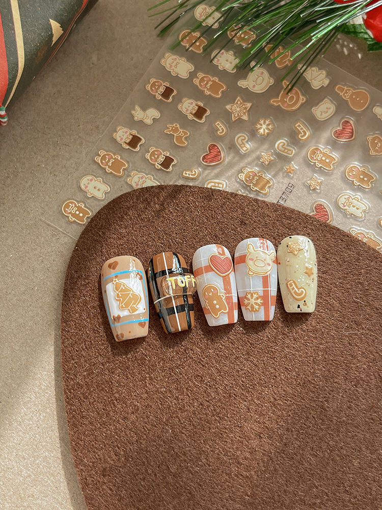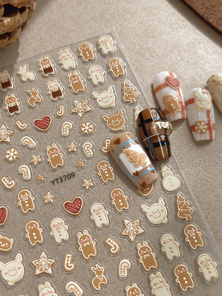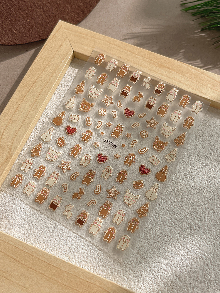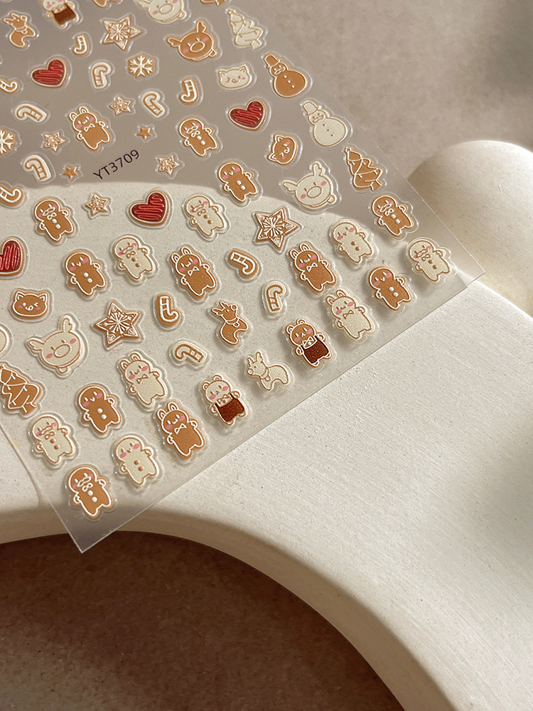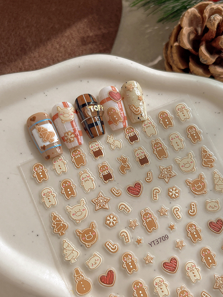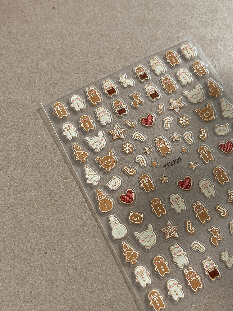 YITU 개미 그림 크리스마스 시리즈 네일 아트 스티커 귀여운 작은 사람들 비스킷 사탕 눈송이 양각 네일 스티커 YT3709