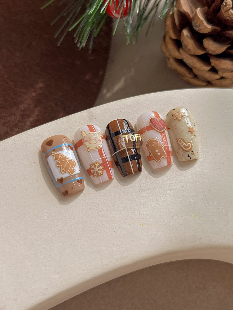 YITU 개미 그림 크리스마스 시리즈 네일 아트 스티커 귀여운 작은 사람들 비스킷 사탕 눈송이 양각 네일 스티커 YT3709스토어 가기
