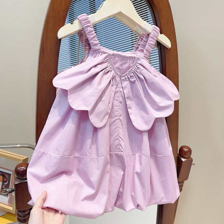 2024 한국 스타일 귀여운 날개 소녀 슬립 스커트 서양식 여름 어린이 솔리드 컬러 공주 원피스 헤어
