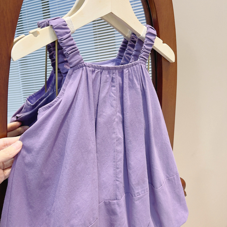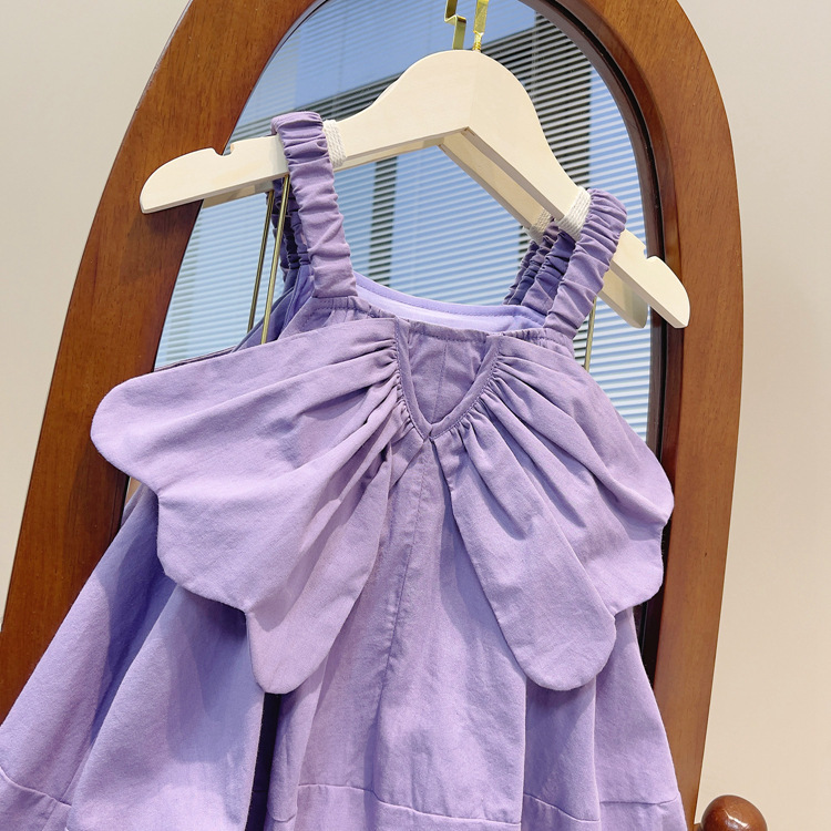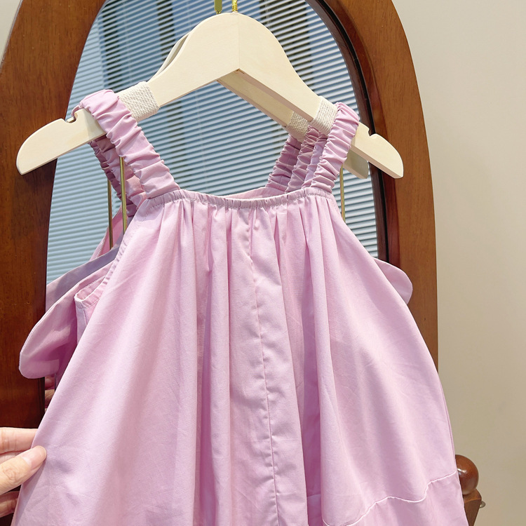 2024 한국 스타일 귀여운 날개 소녀 슬립 스커트 서양식 여름 어린이 솔리드 컬러 공주 원피스 헤어스토어 가기