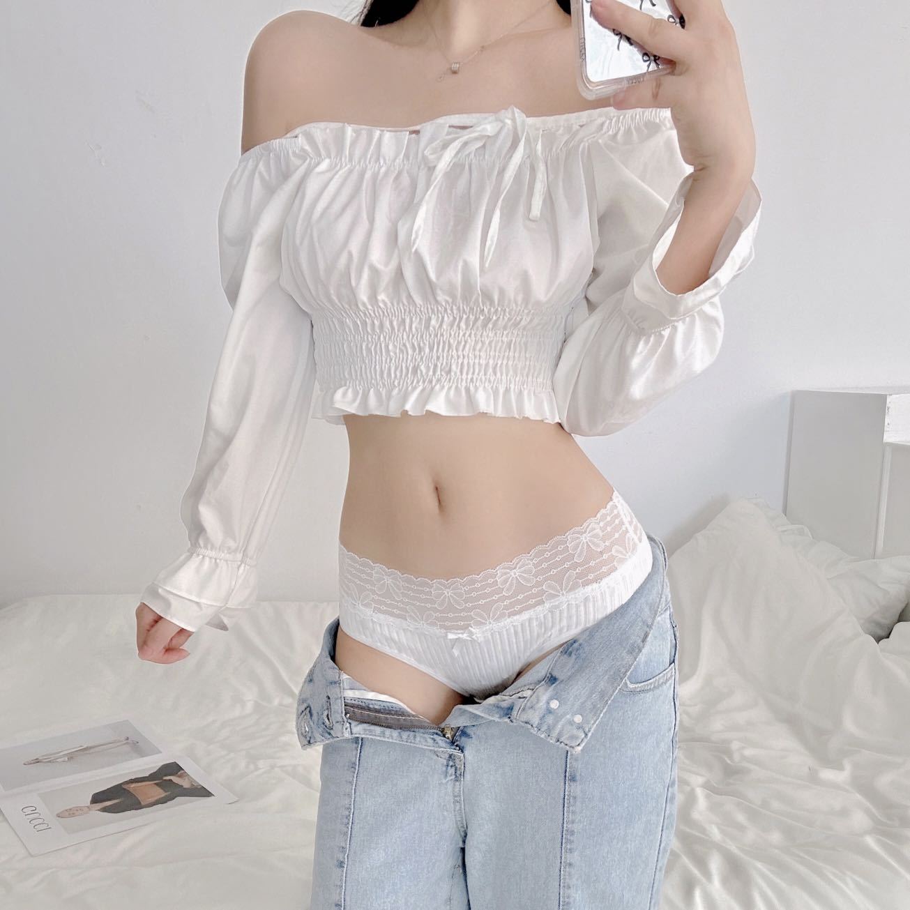 통기성 스레드 코튼 레이스 팬티 여성의 귀여운 활 잘못된 엉덩이 코튼 크로트 학생 팬티 소녀 팬티스토어 가기