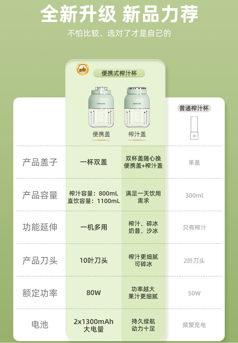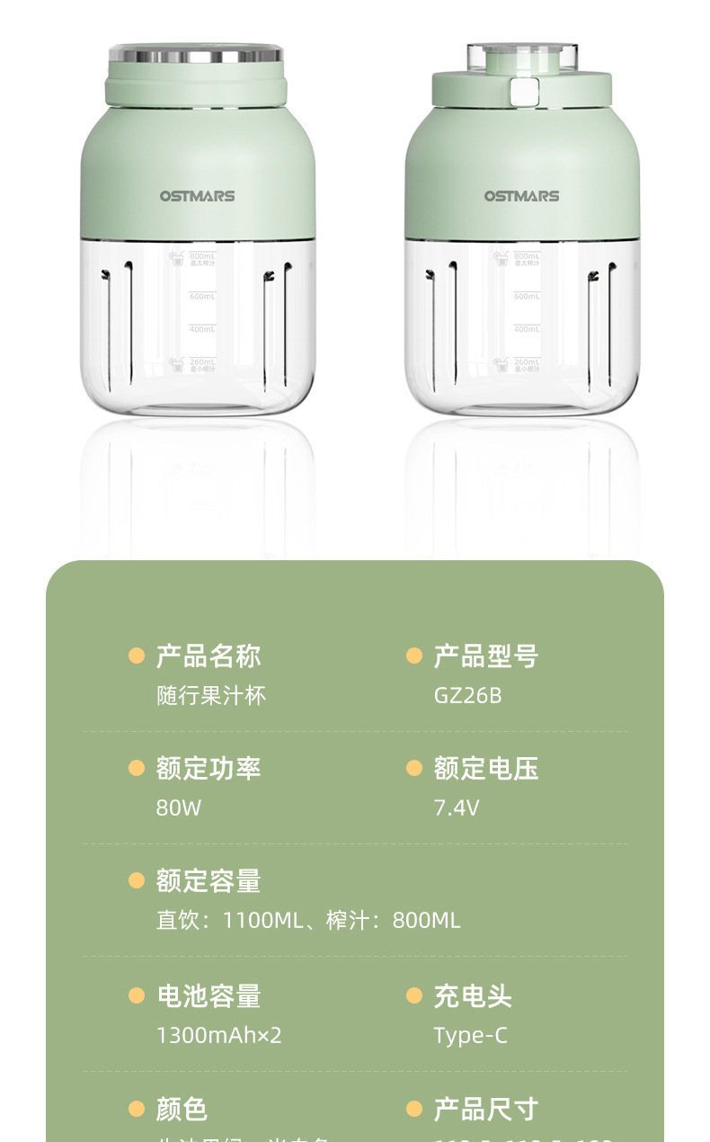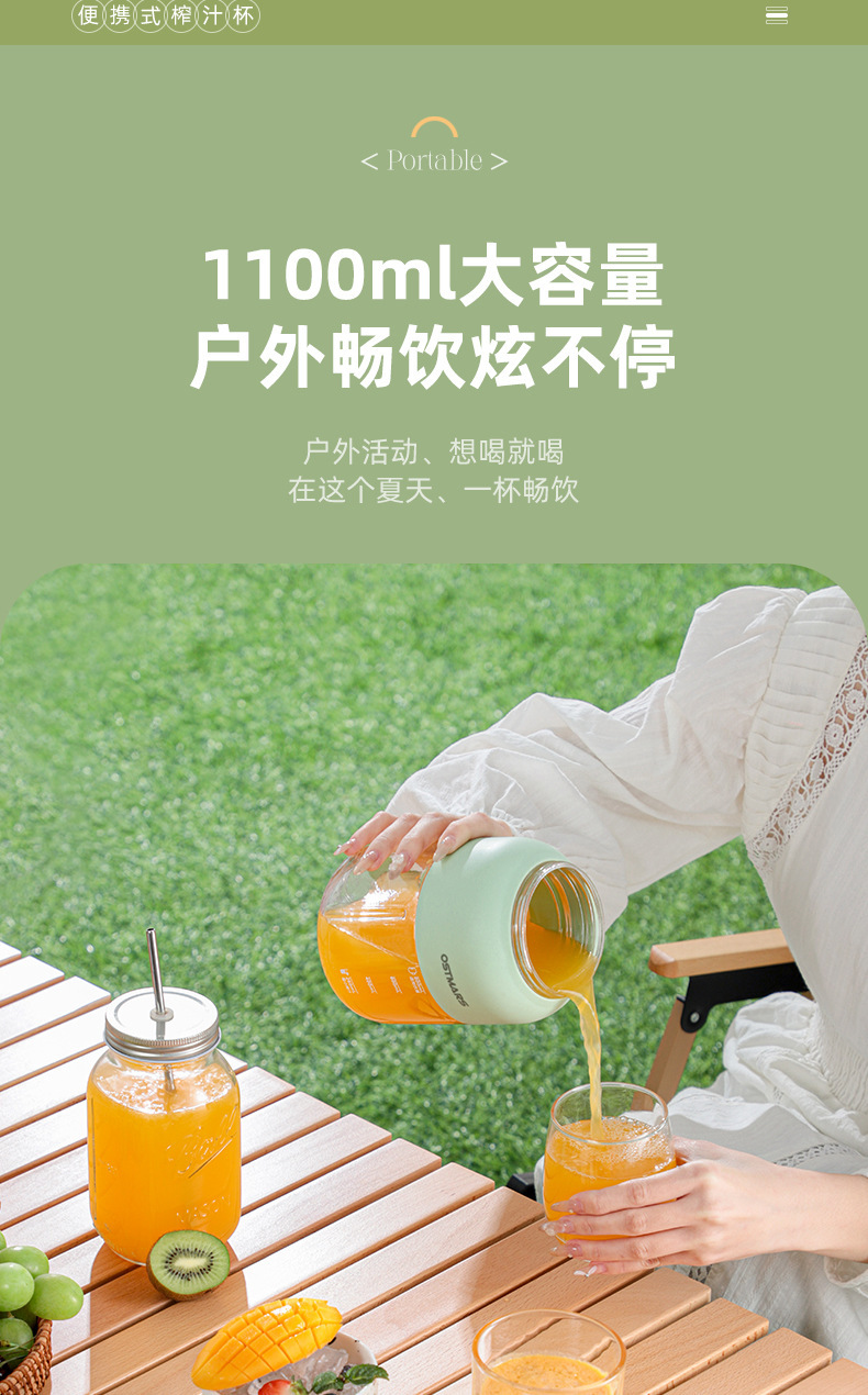 1100ML无线便携式榨汁机手提随行果汁杯网红吨吨杯功能果蔬榨汁机