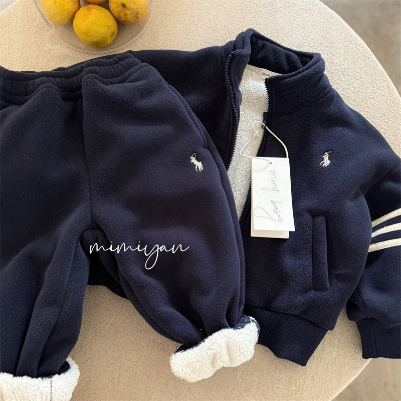 소년과 소녀를위한 새로운 가을, 겨울 어린이 벨벳 따뜻한 재킷 재고 있음 Ollie 벨벳 재킷 캐주얼 유행 투피스 세트스토어 가기