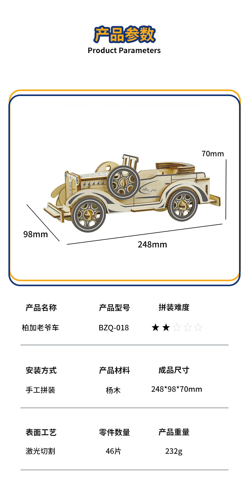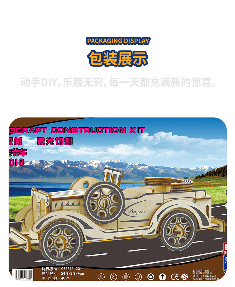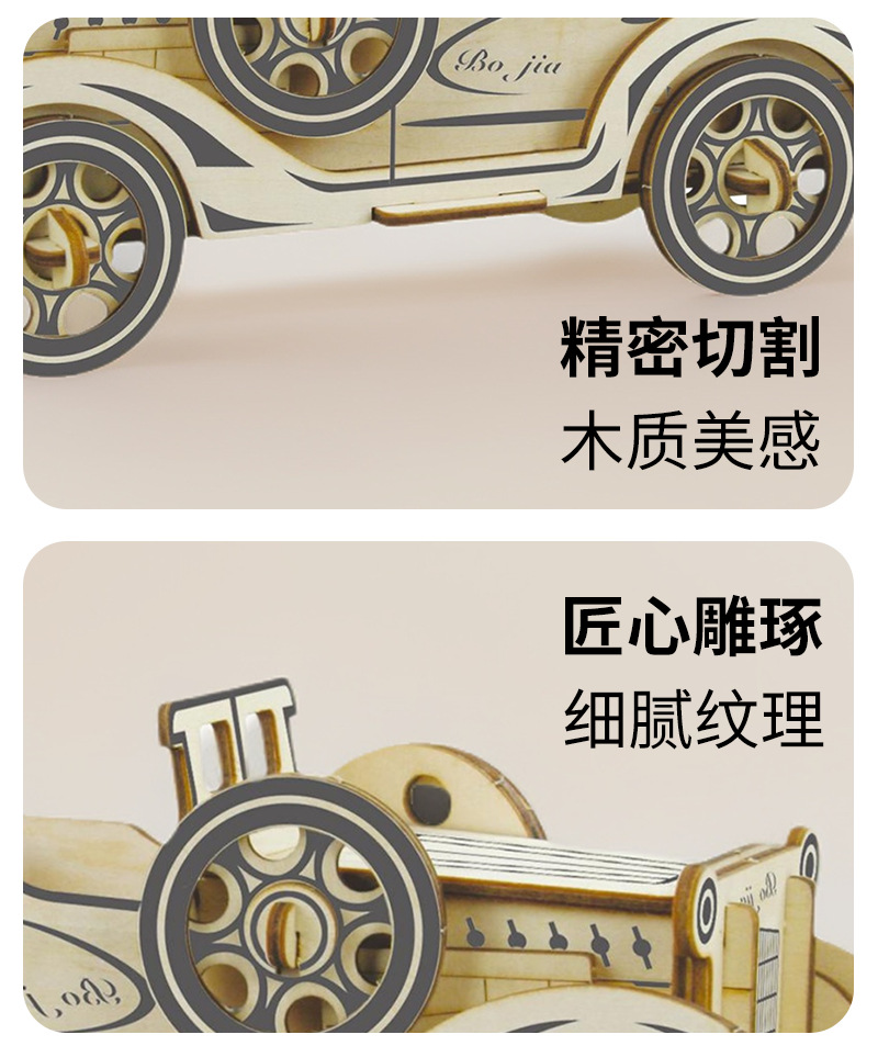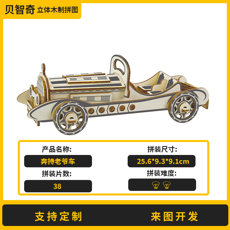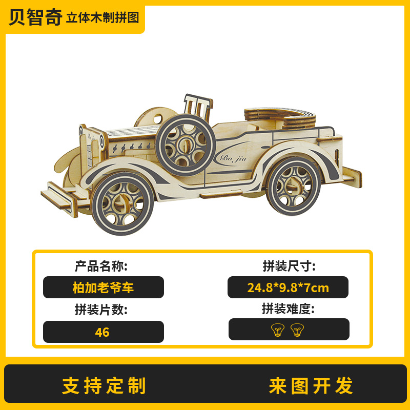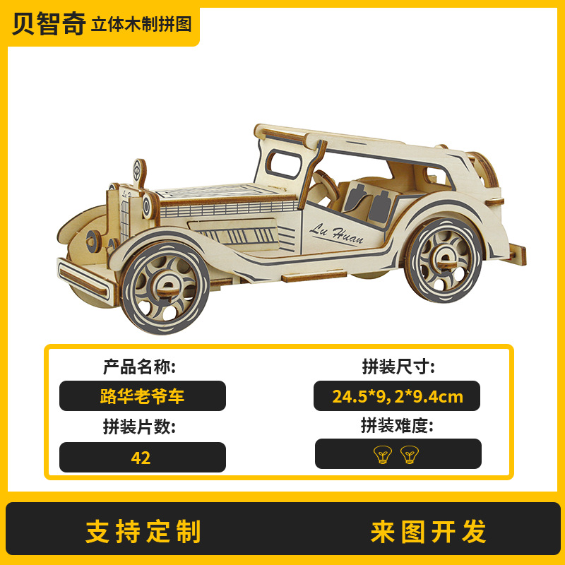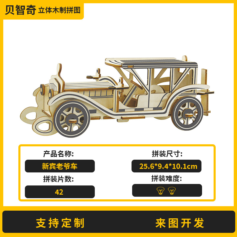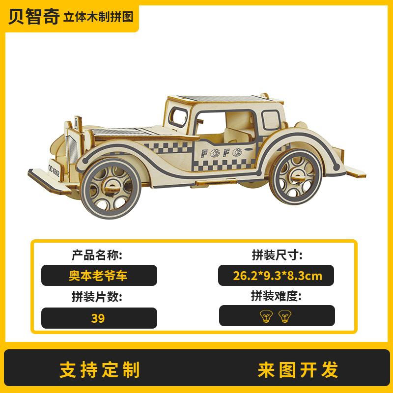 국경 간 대외 무역 3d 나무 3 차원 퍼즐 어린이 DIY 시뮬레이션 모델 3 차원 복고풍 자동차 클래식 자동차 장난감 모델