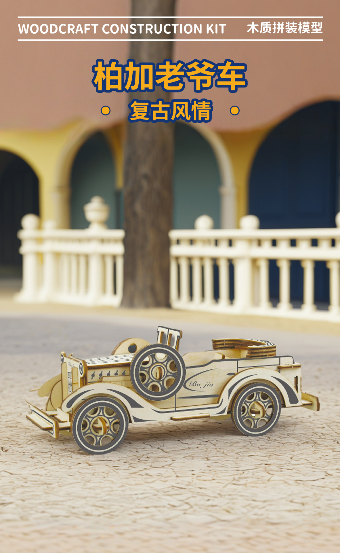 국경 간 대외 무역 3d 나무 3 차원 퍼즐 어린이 DIY 시뮬레이션 모델 3 차원 복고풍 자동차 클래식 자동차 장난감 모델스토어 가기