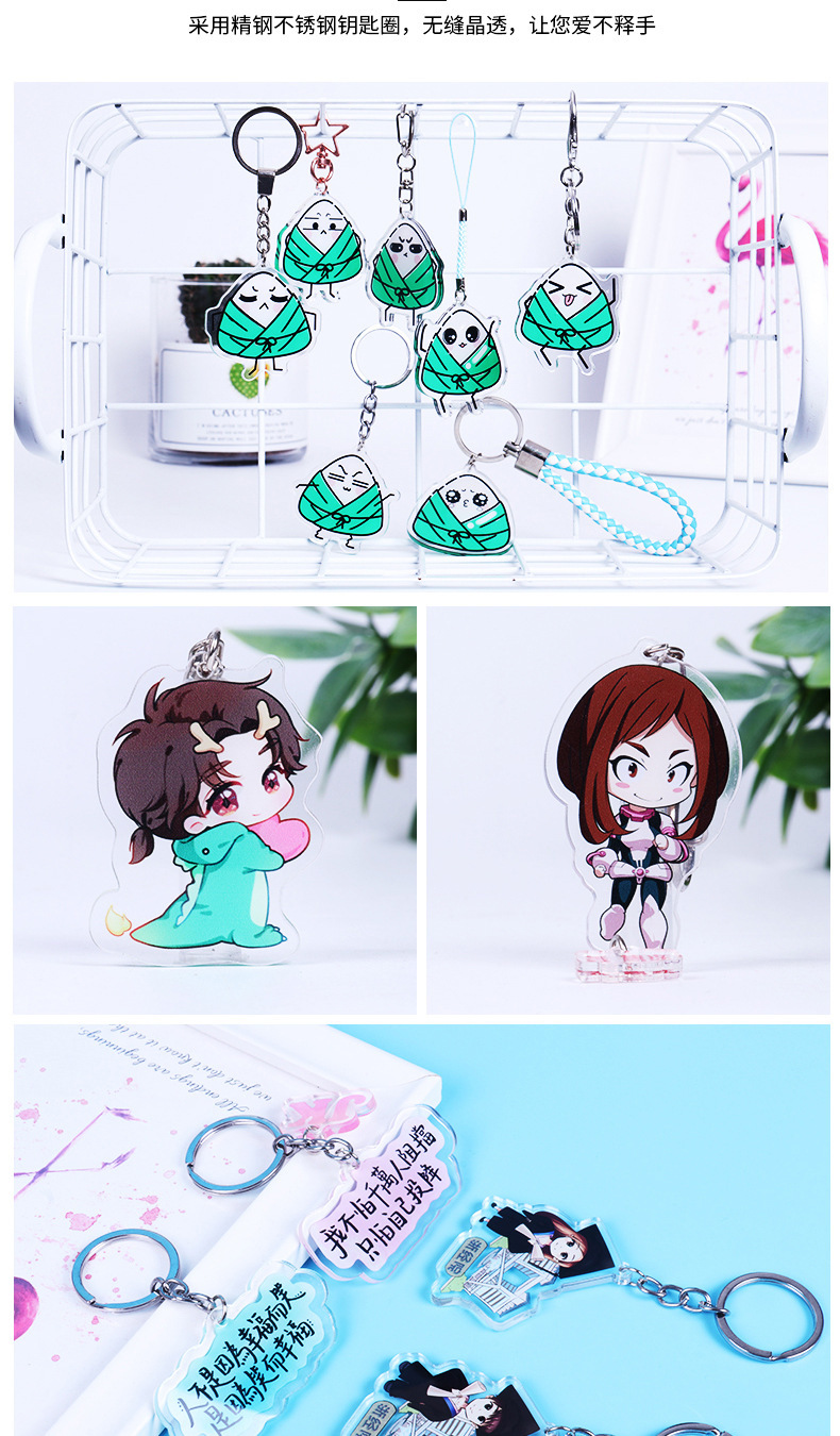 아크릴 키 체인 사용자 정의 만화 애니메이션 주변 선물 스탠드 컬러 투명 특수 모양의 키 체인 펜던트