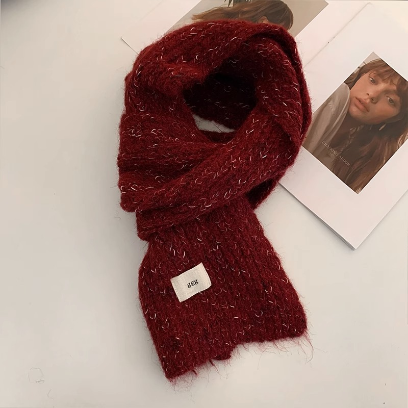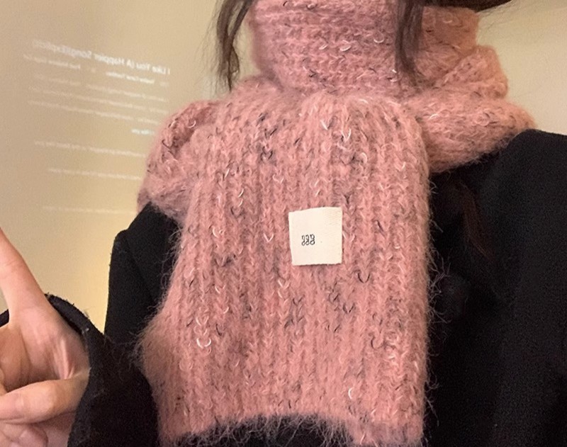 가을과 겨울 따뜻한 복고풍 단색 스카프 여성의 2024 새로운 니트 두꺼운 따뜻한 부드러운 왁스 학생 목도리 스카프
