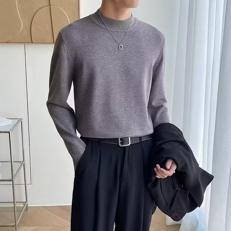 터틀넥 스웨터 남성용 슬림 핏 블랙 코어 스핀 원사 유행 인테리어 솔리드 컬러 남성용 니트 셔츠 긴소매베이스 셔츠 탑