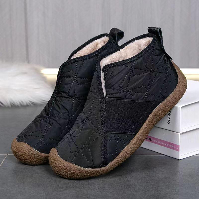 가을과 겨울 2024 새로운 항공 우주 직물 슬립 온 스노우 부츠 낮은 굽 편안한 미끄럼 방지 경량 여성용 코튼 신발 가을과 겨울스토어 가기