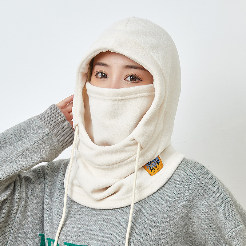 秋冬季户外运动抓绒面罩帽子围脖一体保暖防风寒摇粒绒骑行套头帽
