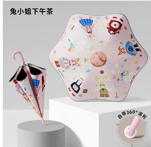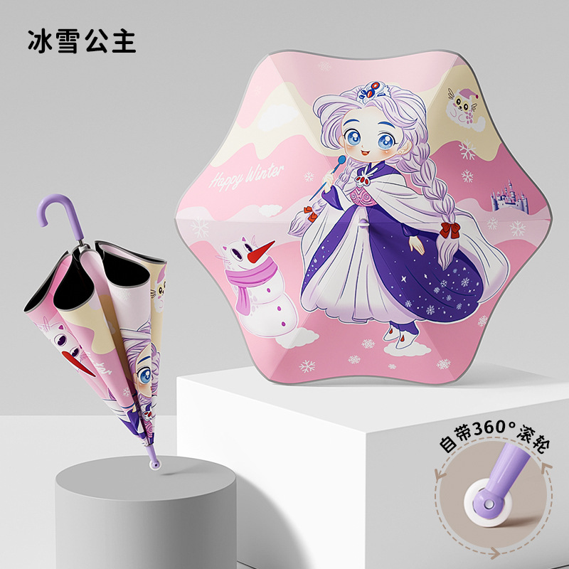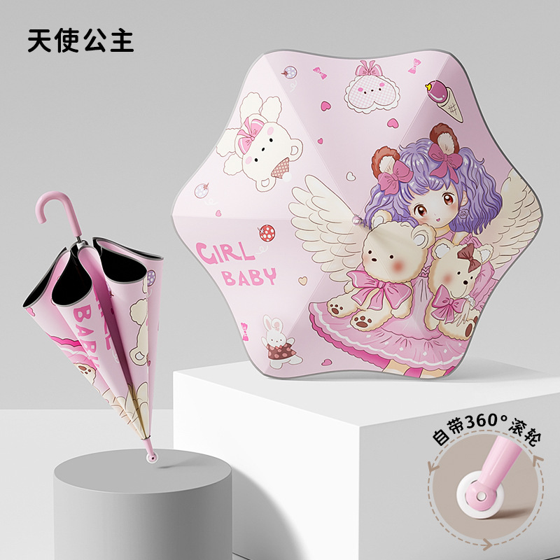 어린이 우산 만화 롱 핸들 우산 롤러 대형 소년 초등학생 안티 스터치 소녀 비닐 비 또는 빛