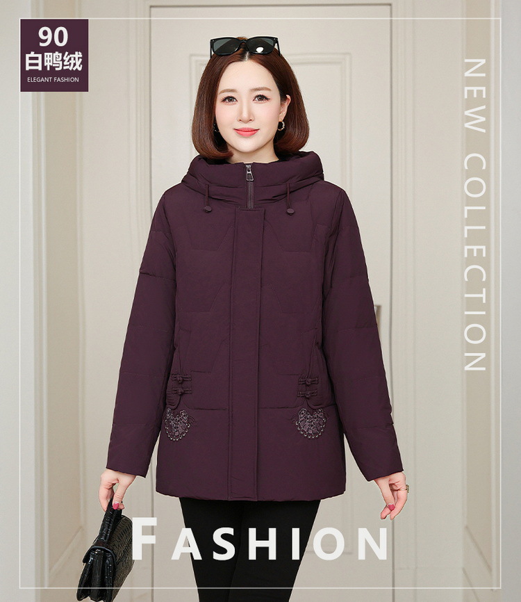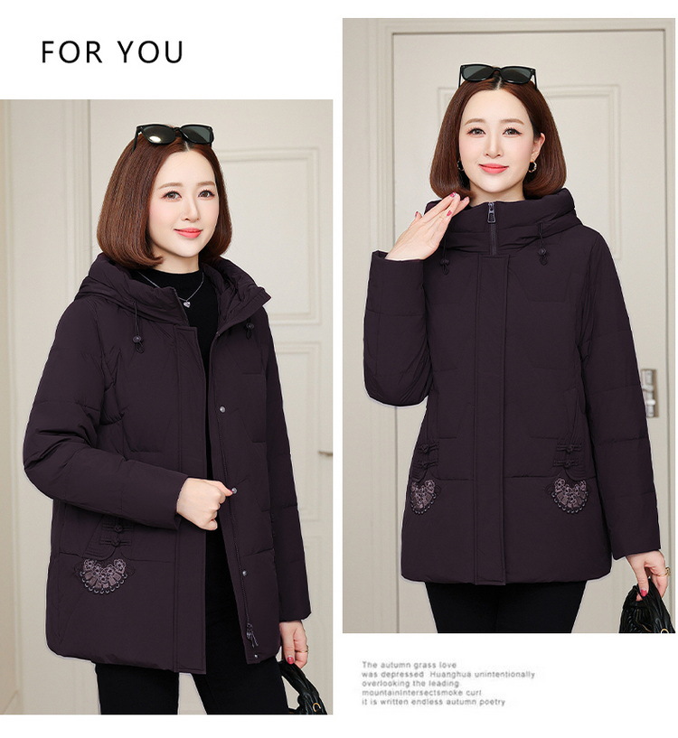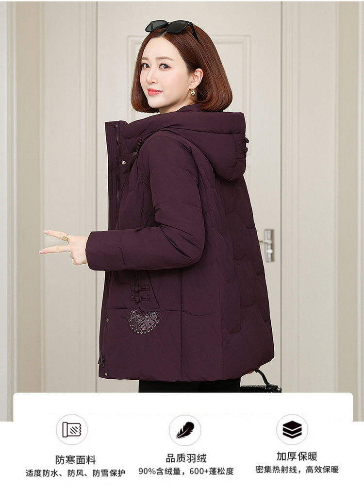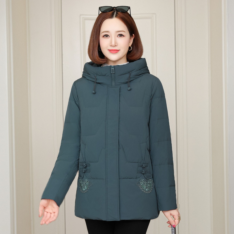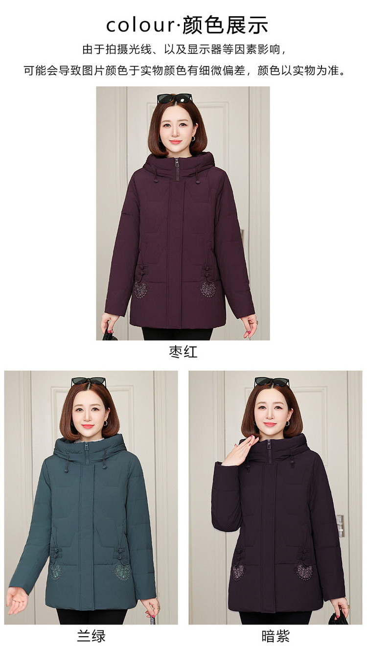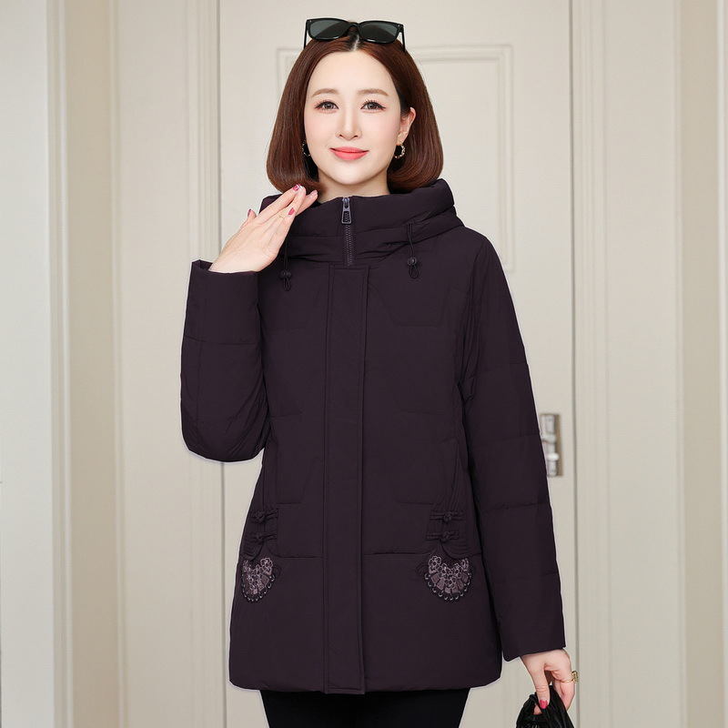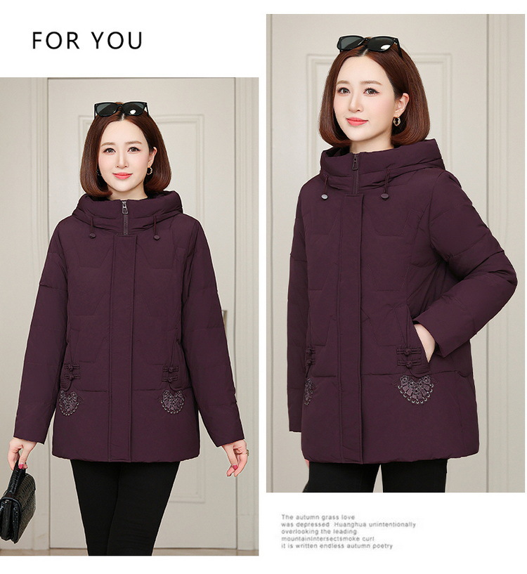 여성용 다운 재킷, 중간 길이, 엄마복, 중년 및 노인, 작은 사이즈, 두꺼운, 서양식 후드 겨울 신작 대형 재킷