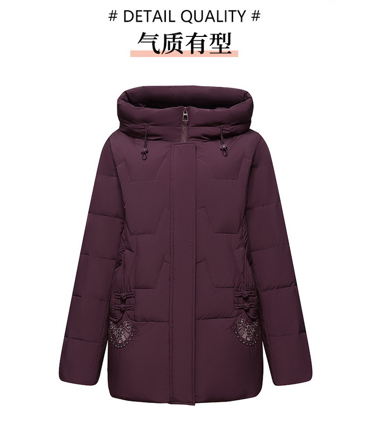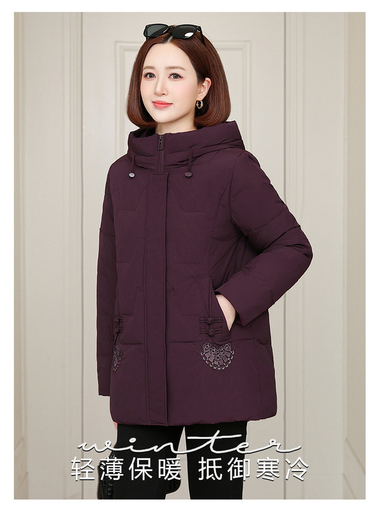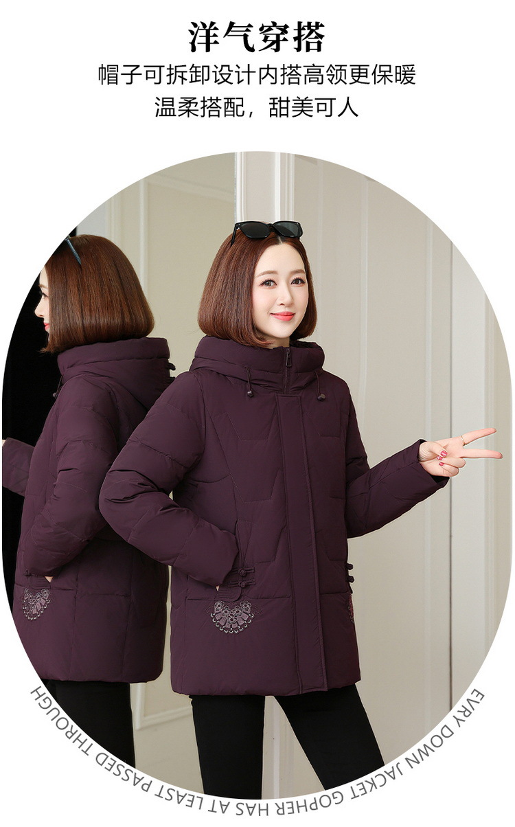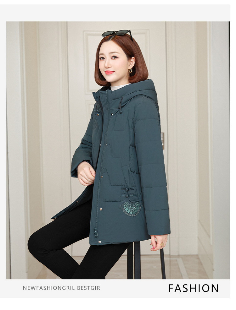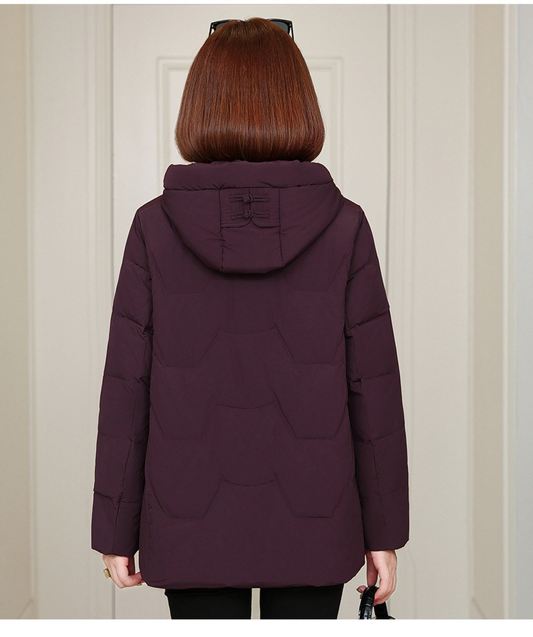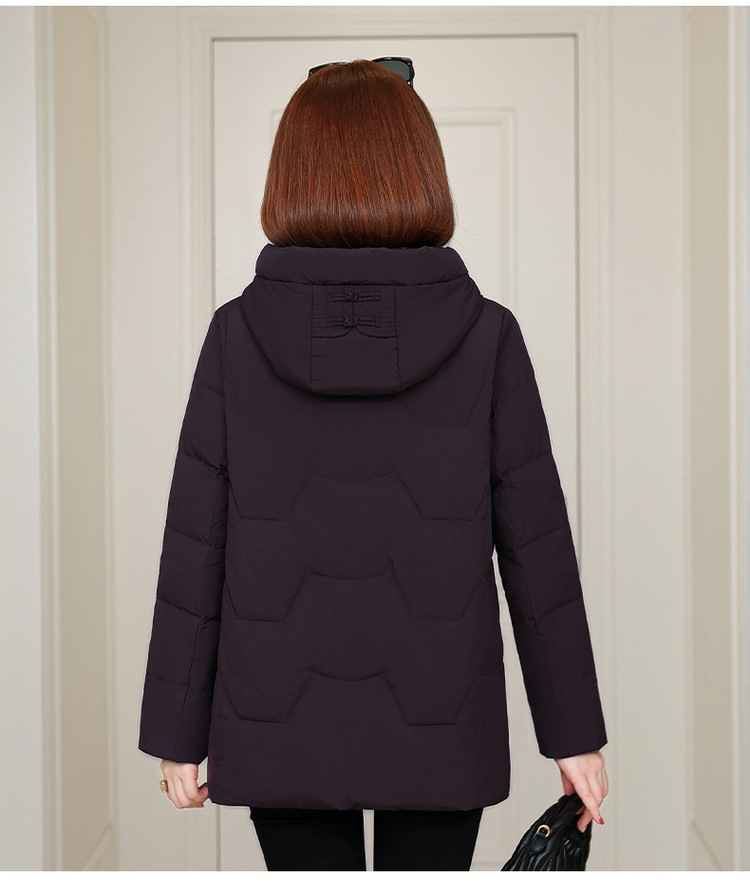 여성용 다운 재킷, 중간 길이, 엄마복, 중년 및 노인, 작은 사이즈, 두꺼운, 서양식 후드 겨울 신작 대형 재킷