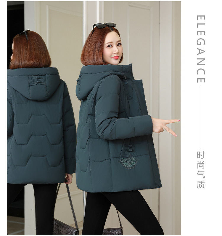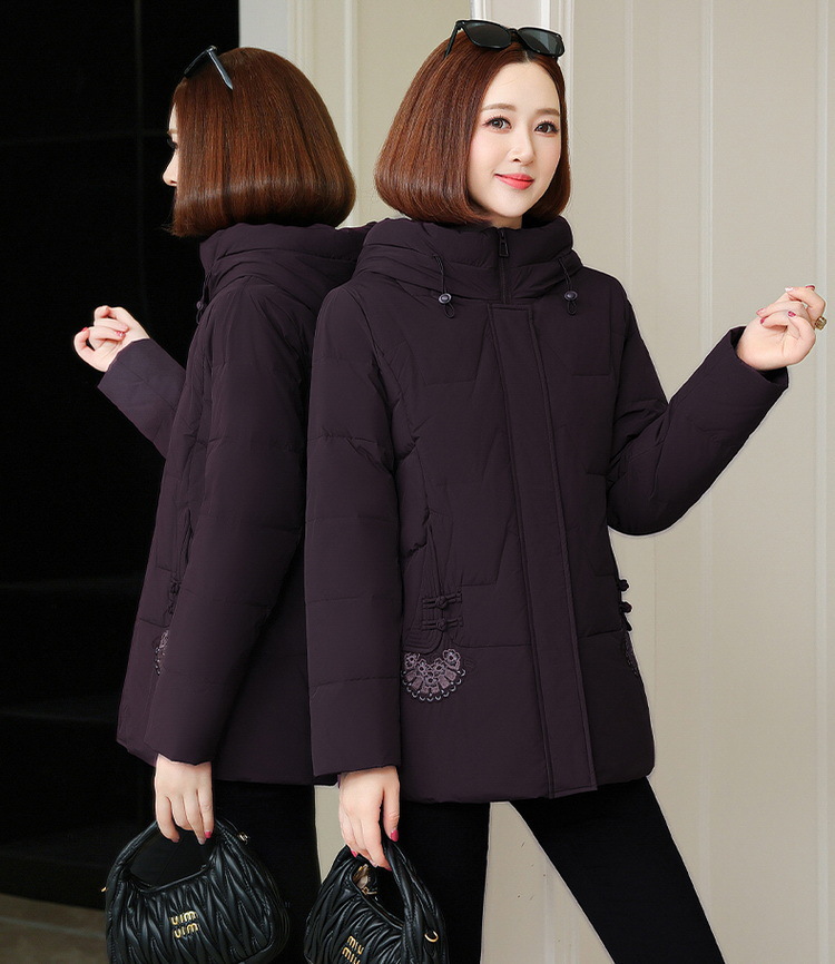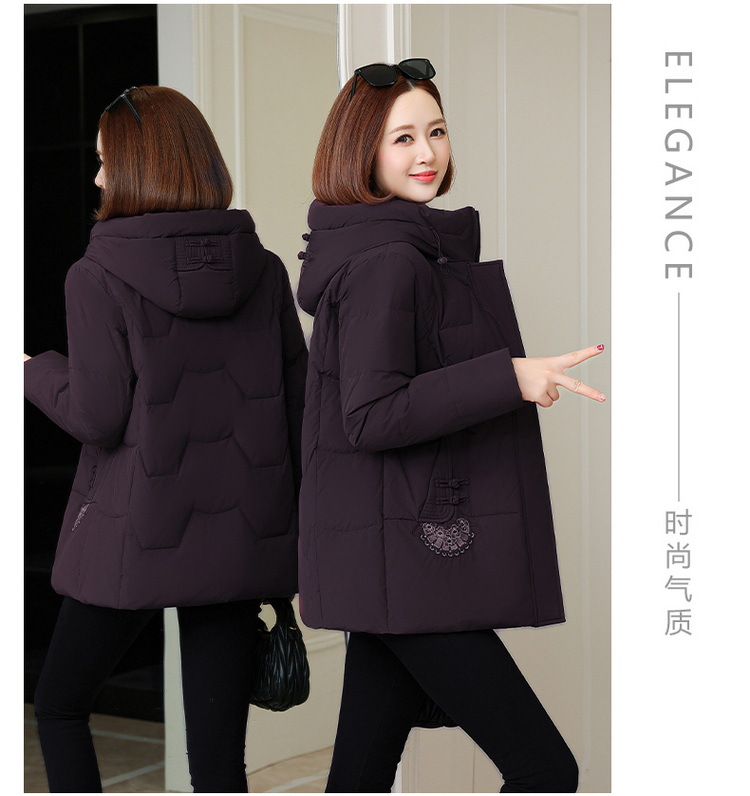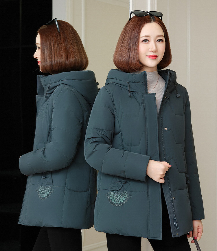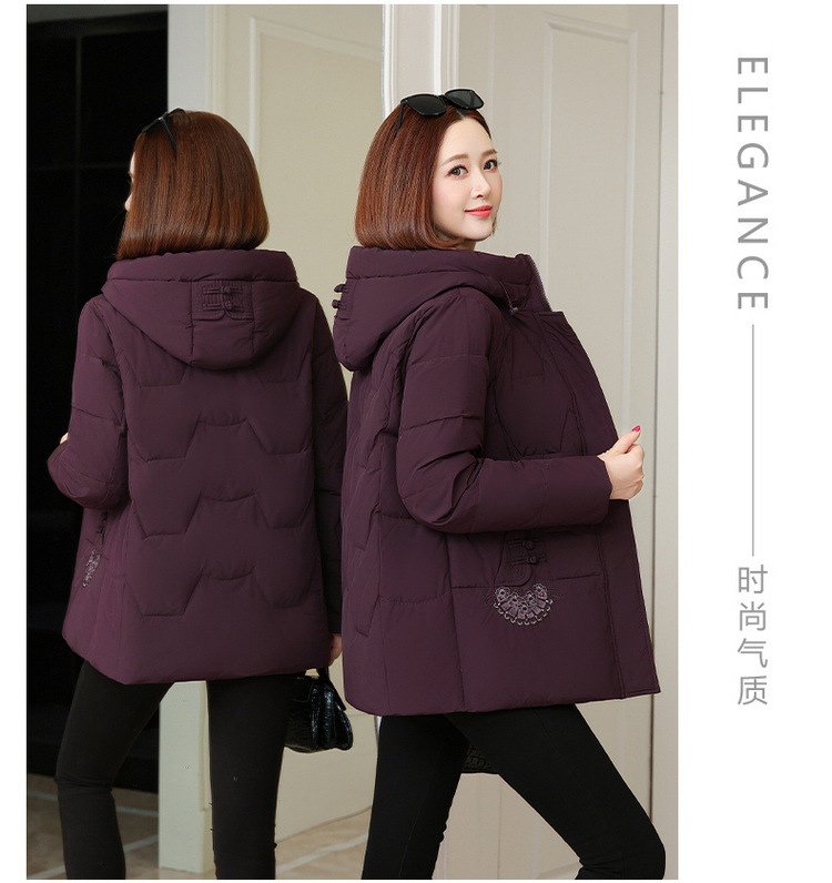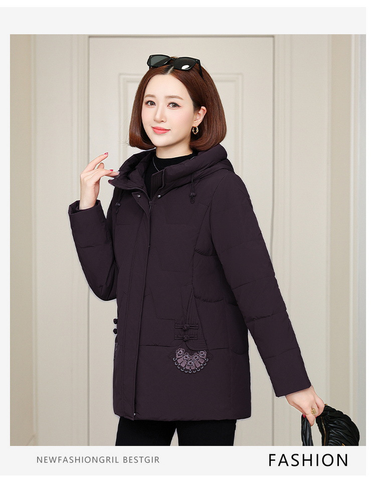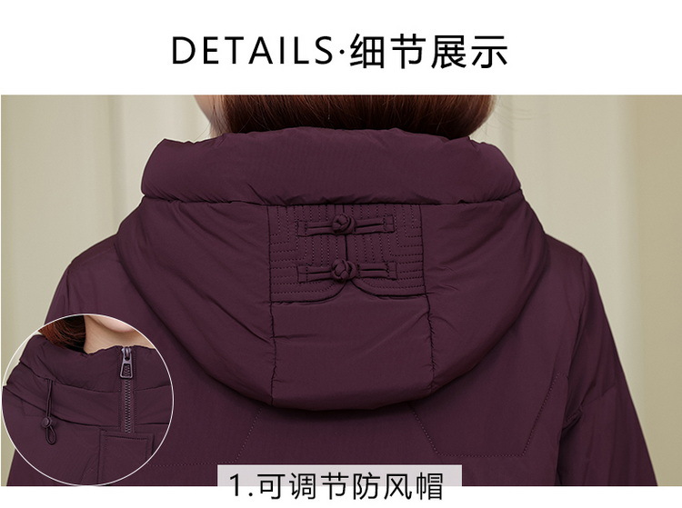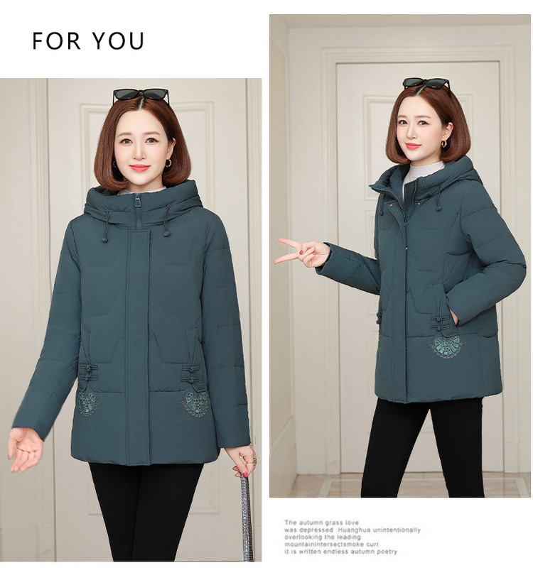 여성용 다운 재킷, 중간 길이, 엄마복, 중년 및 노인, 작은 사이즈, 두꺼운, 서양식 후드 겨울 신작 대형 재킷