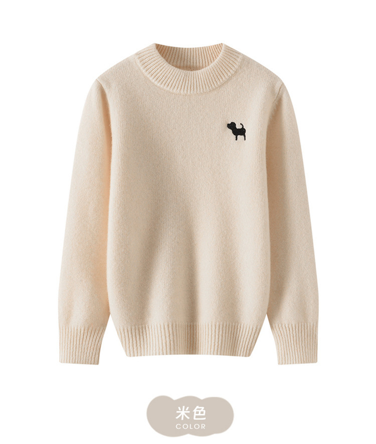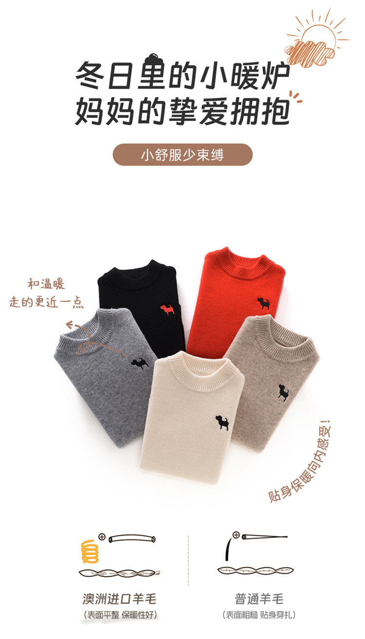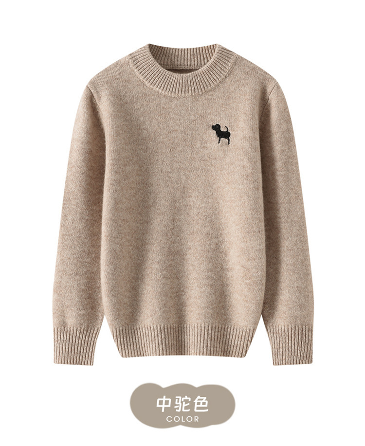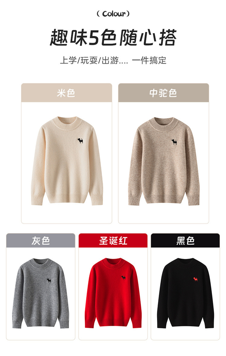 가을과 겨울 새로운 100 순수 양모 스웨터 어린이 반 높이 자수 동물 두꺼운 소녀 스웨터 소년 스웨터