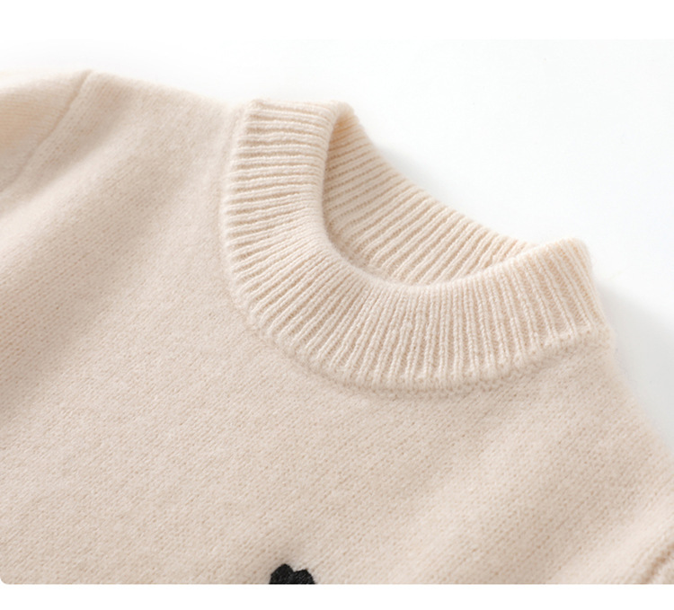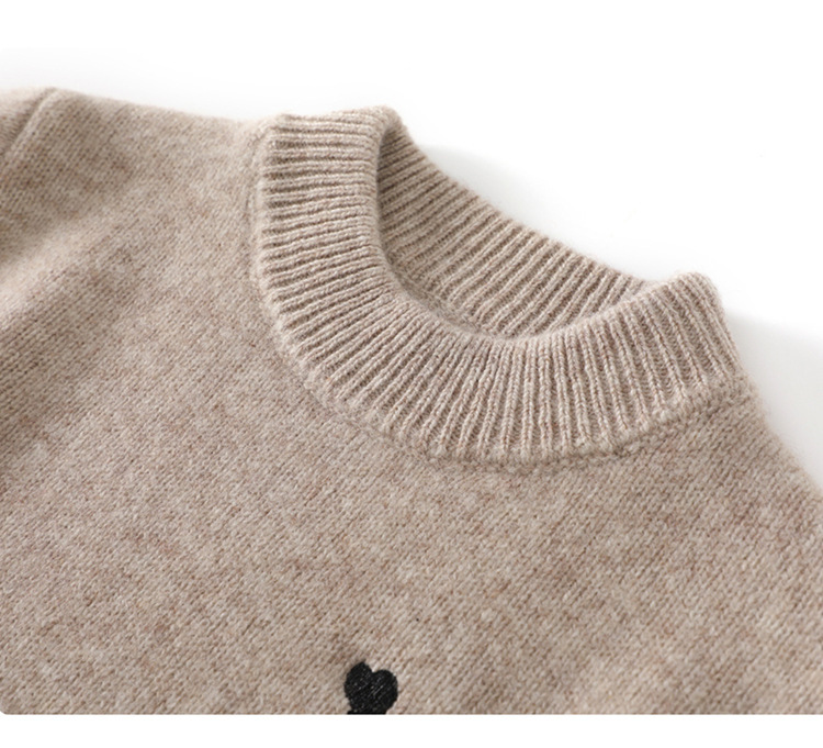 가을과 겨울 새로운 100 순수 양모 스웨터 어린이 반 높이 자수 동물 두꺼운 소녀 스웨터 소년 스웨터스토어 가기