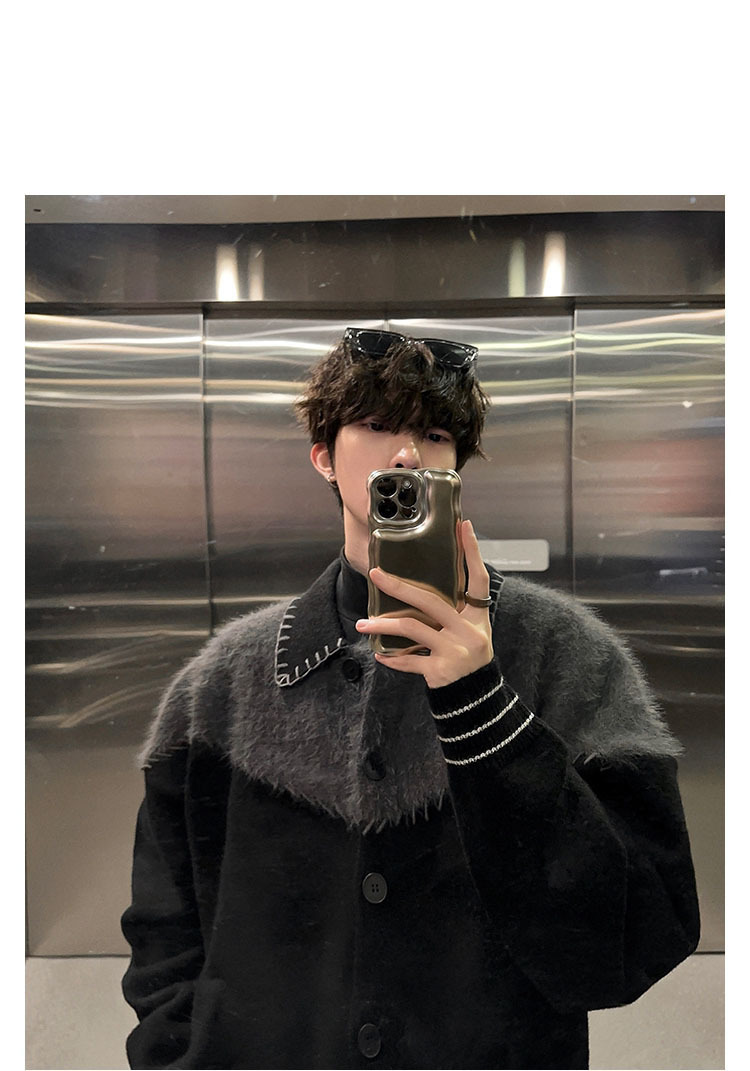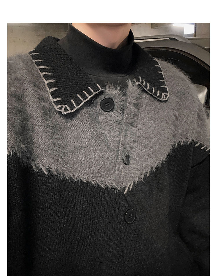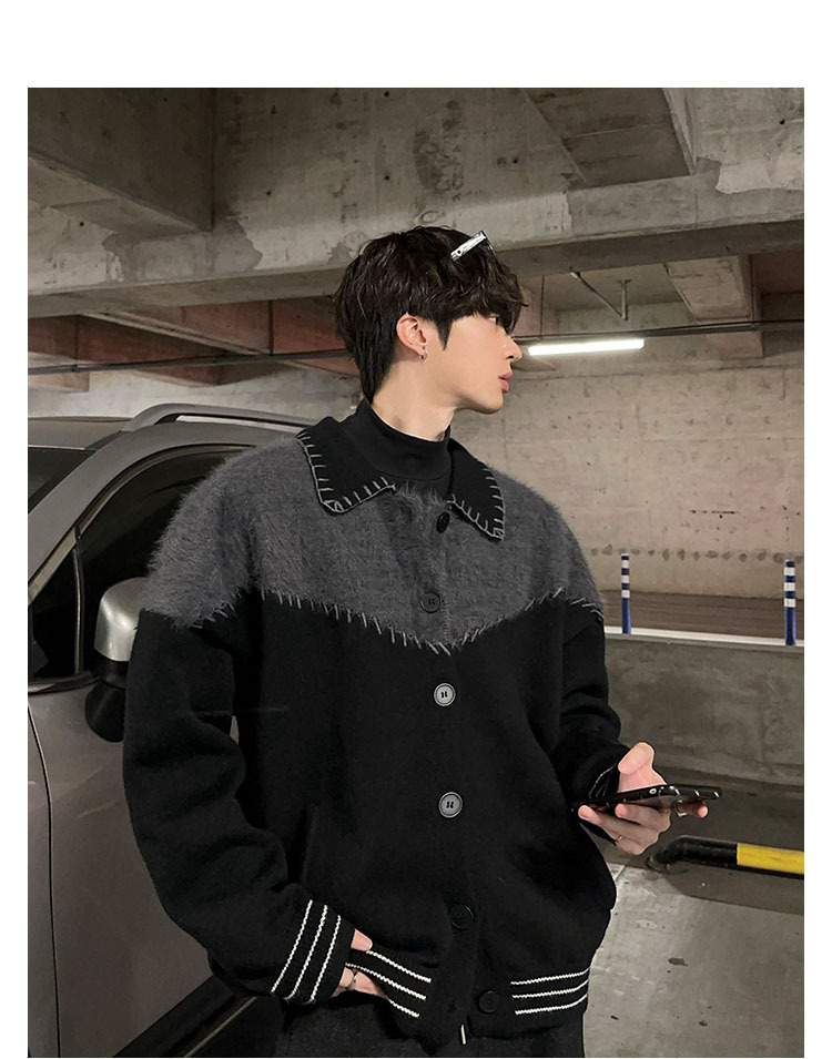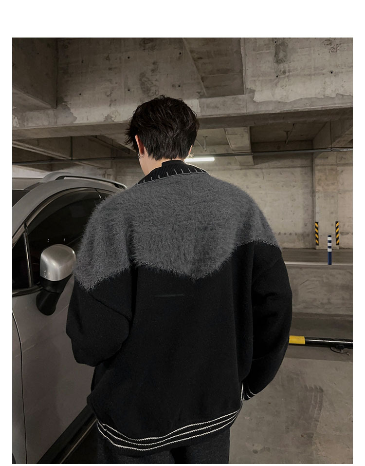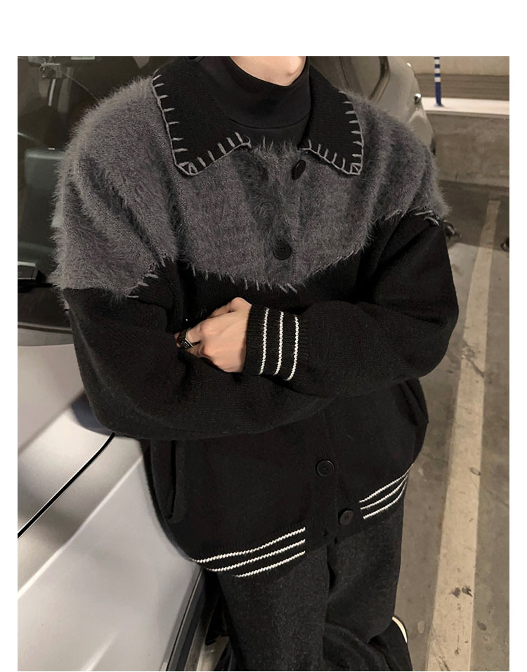 아메리칸 스타일 빈티지 스티칭 대조 컬러 니트 카디건 재킷 남성 가을 및 겨울 유행 올 매치 캐주얼 루즈 옷깃 스웨터