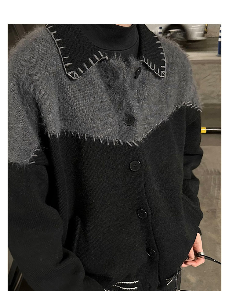 아메리칸 스타일 빈티지 스티칭 대조 컬러 니트 카디건 재킷 남성 가을 및 겨울 유행 올 매치 캐주얼 루즈 옷깃 스웨터스토어 가기