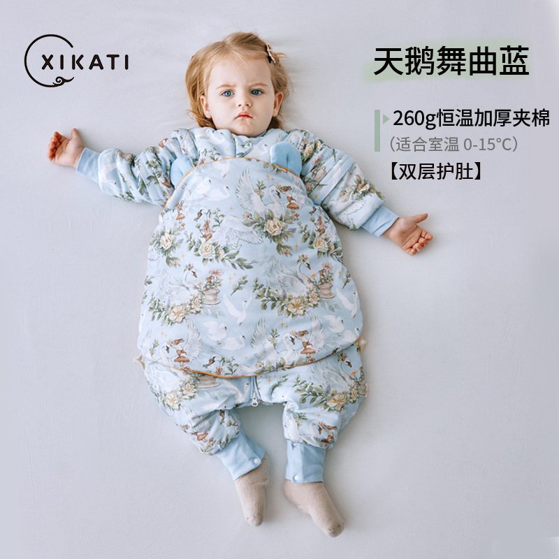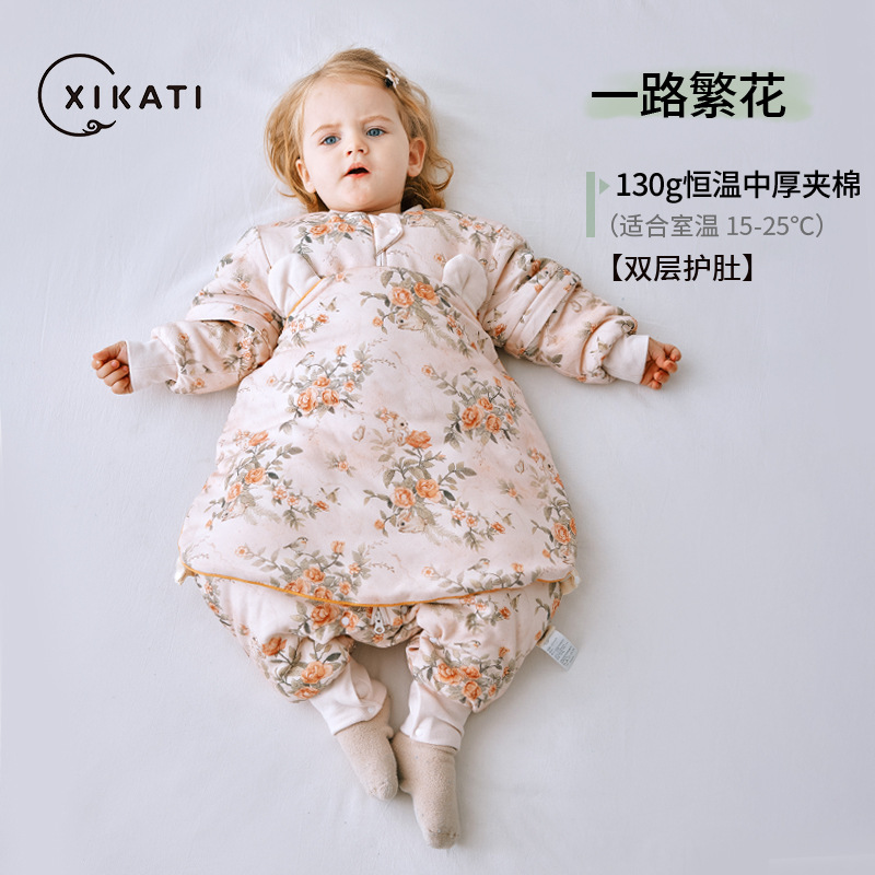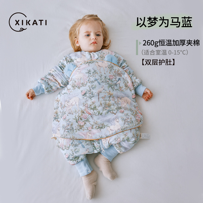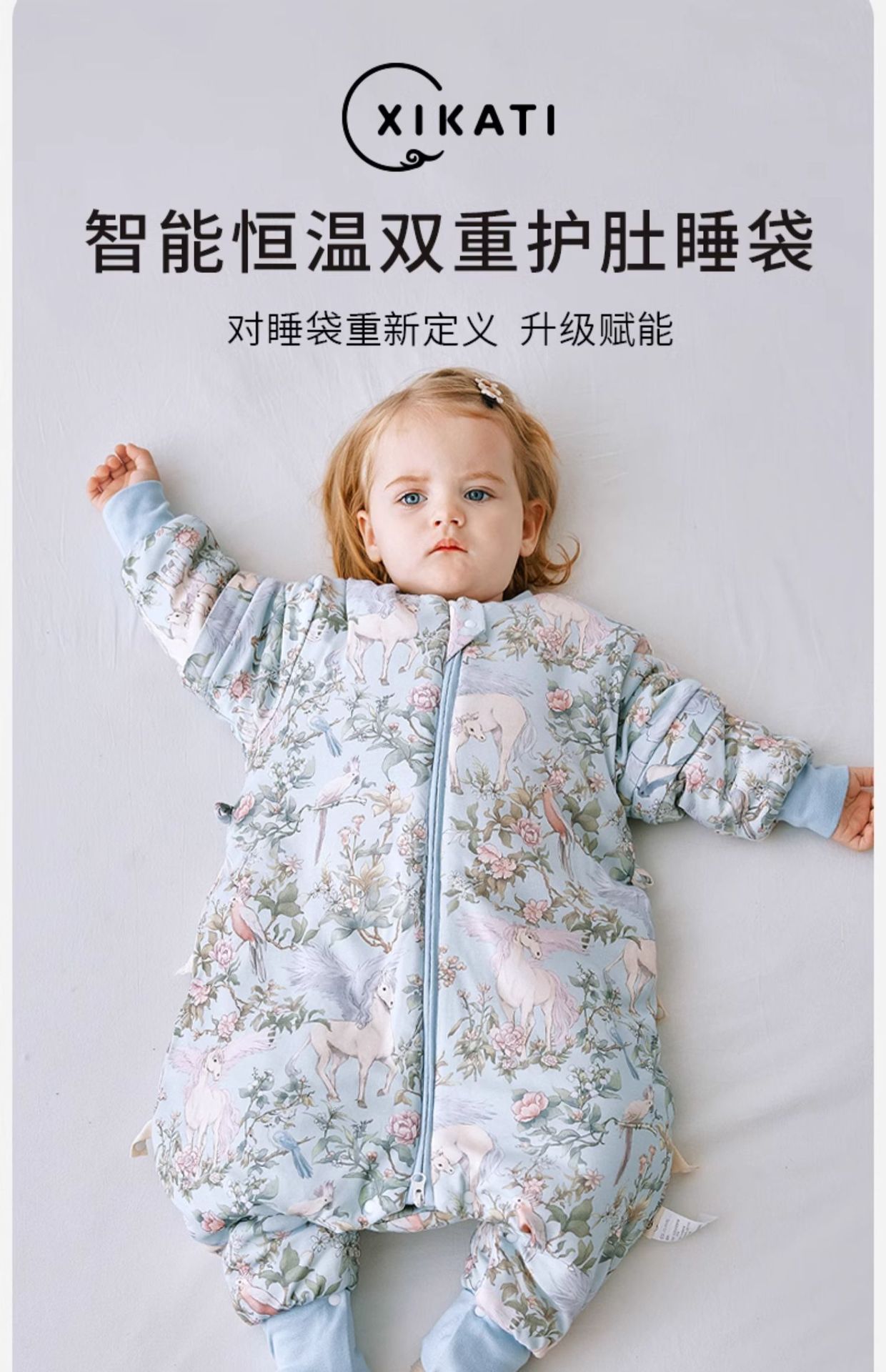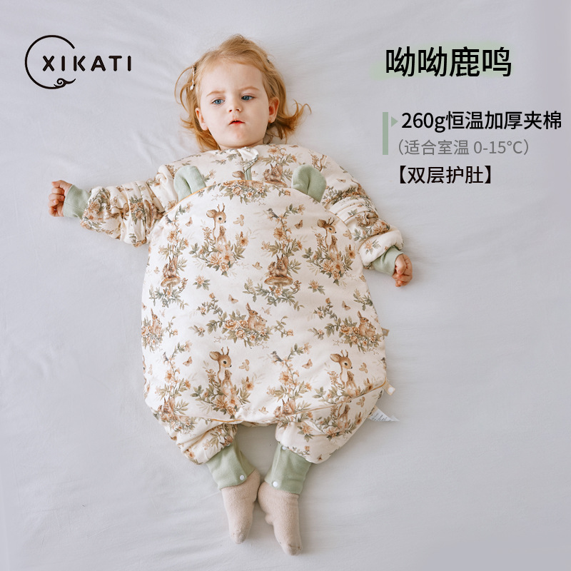 Xikati 슬리핑 백 아기 가을과 겨울 아기 일정한 온도 안티 킥 퀼트 겨울 신생아 어린이 다리 사계절 유니버설