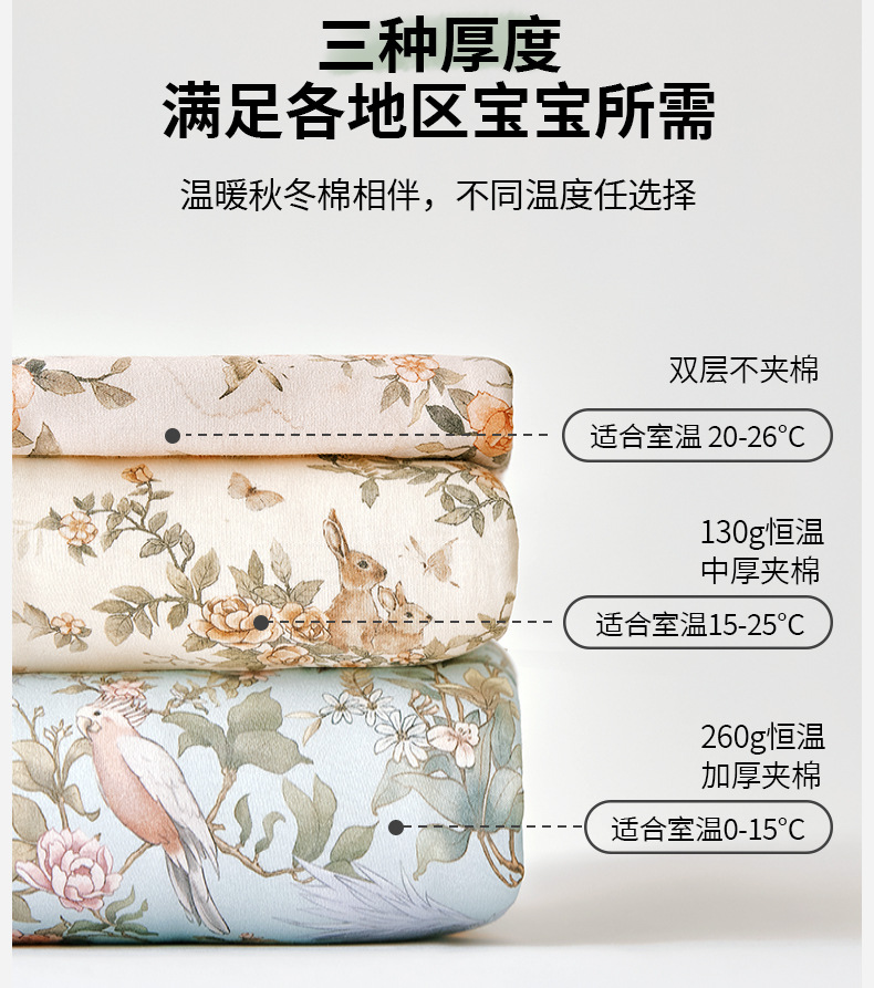 • 봄, 가을 더블 레이어 + 배 보호 [20-26에 적합℃】새와 꽃밥