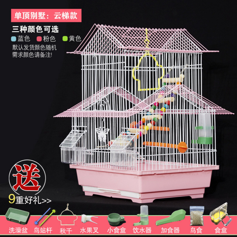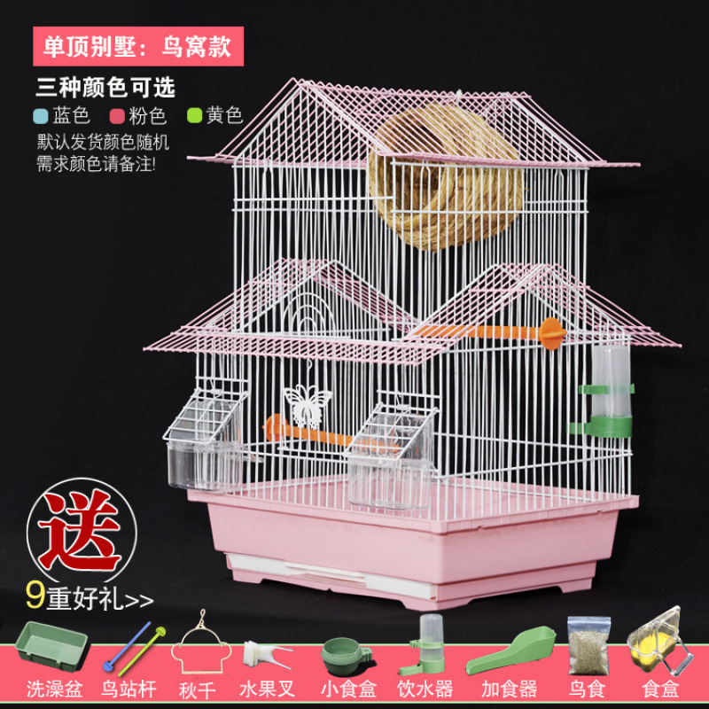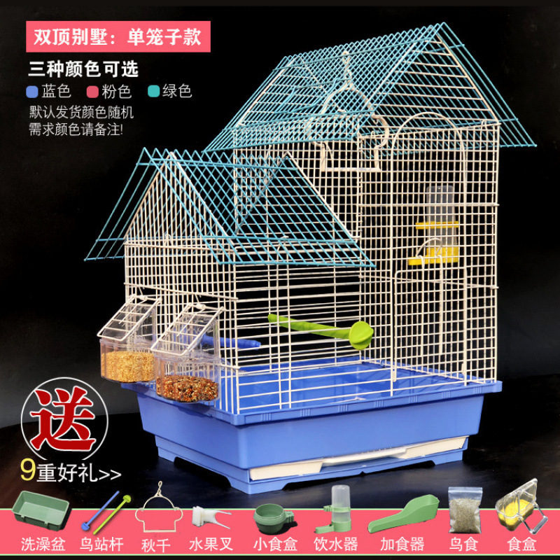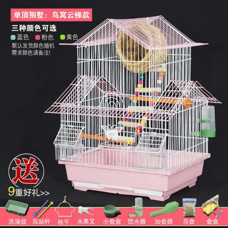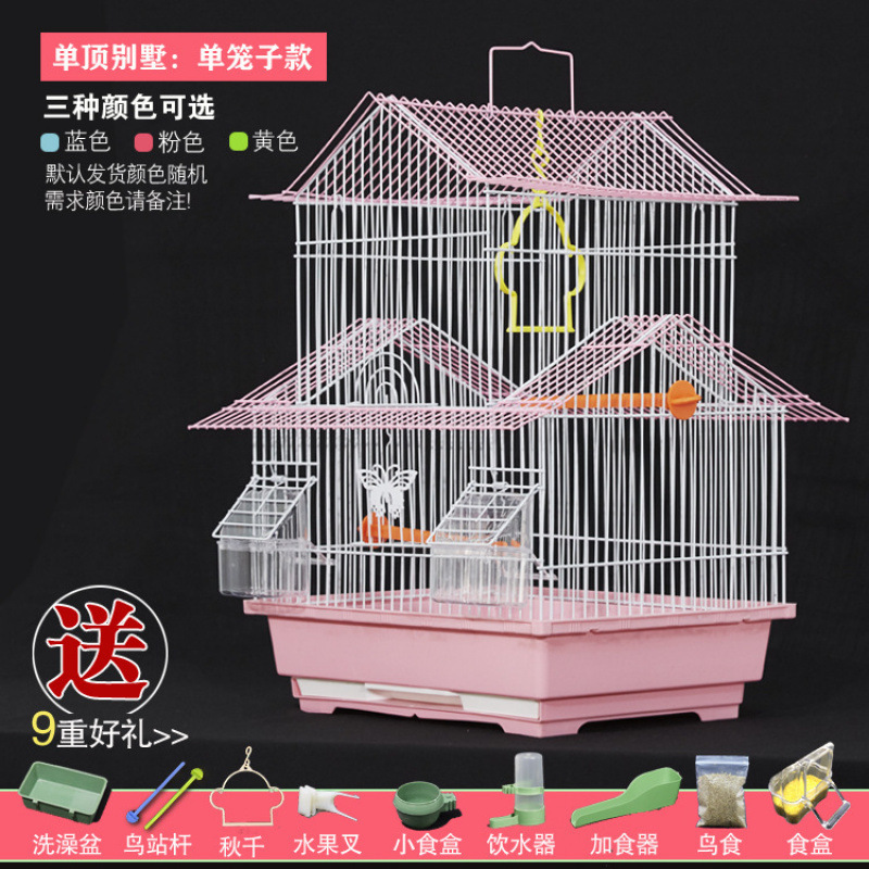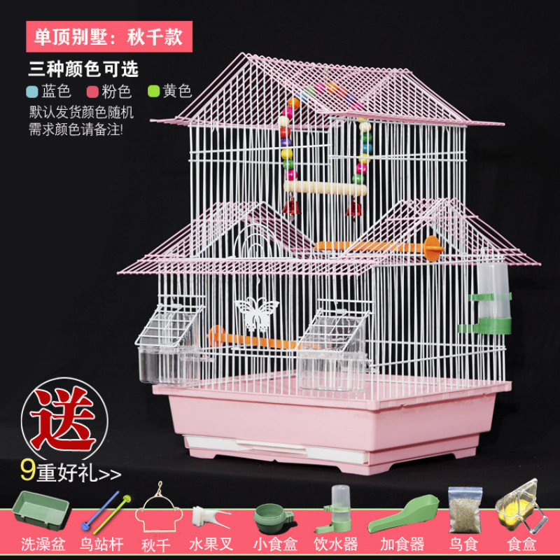 Budgerigar 새 케이지 자수 모란 새 대형 빌라 스몰 사이즈 새장 금속 지붕 모양스토어 가기