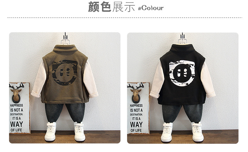 소년 양털 조끼 2024 년 가을과 겨울 새로운 어린이 늦가을과 초겨울 남성 두꺼운 어린이 따뜻한 허리 코트 유행스토어 가기